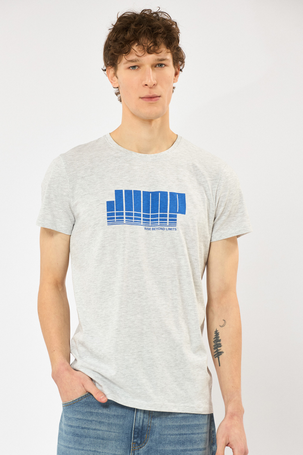 חולצת טי עם הדפס קדמי כיתוב ספורטיבי צווארון עגול בד נעים למגע גזרה רגילה