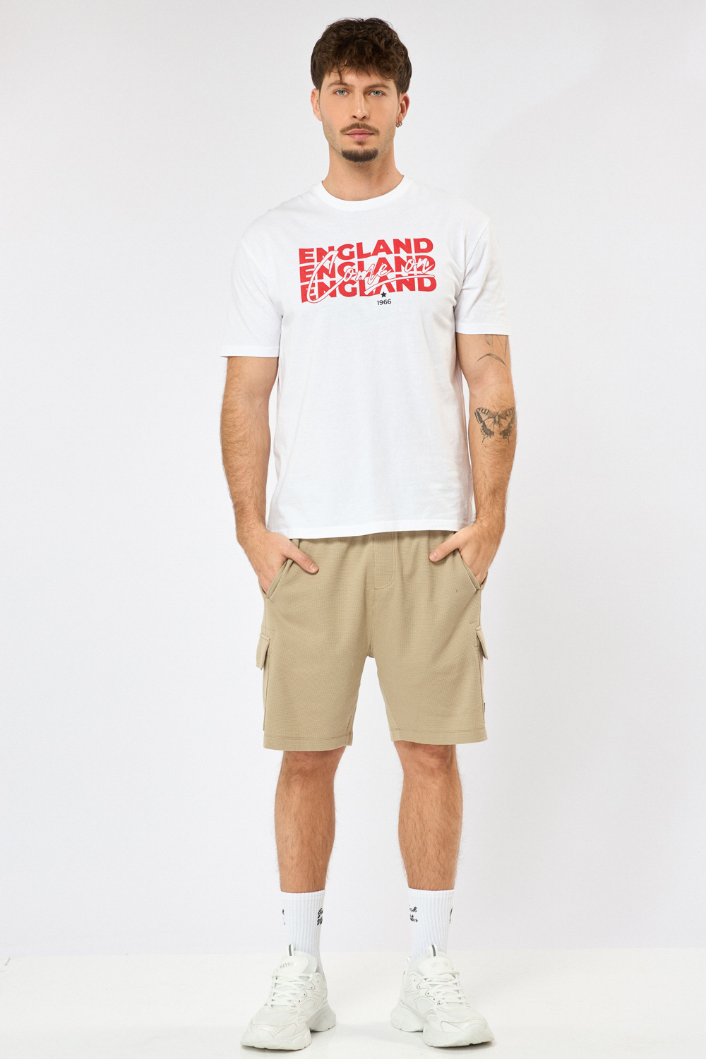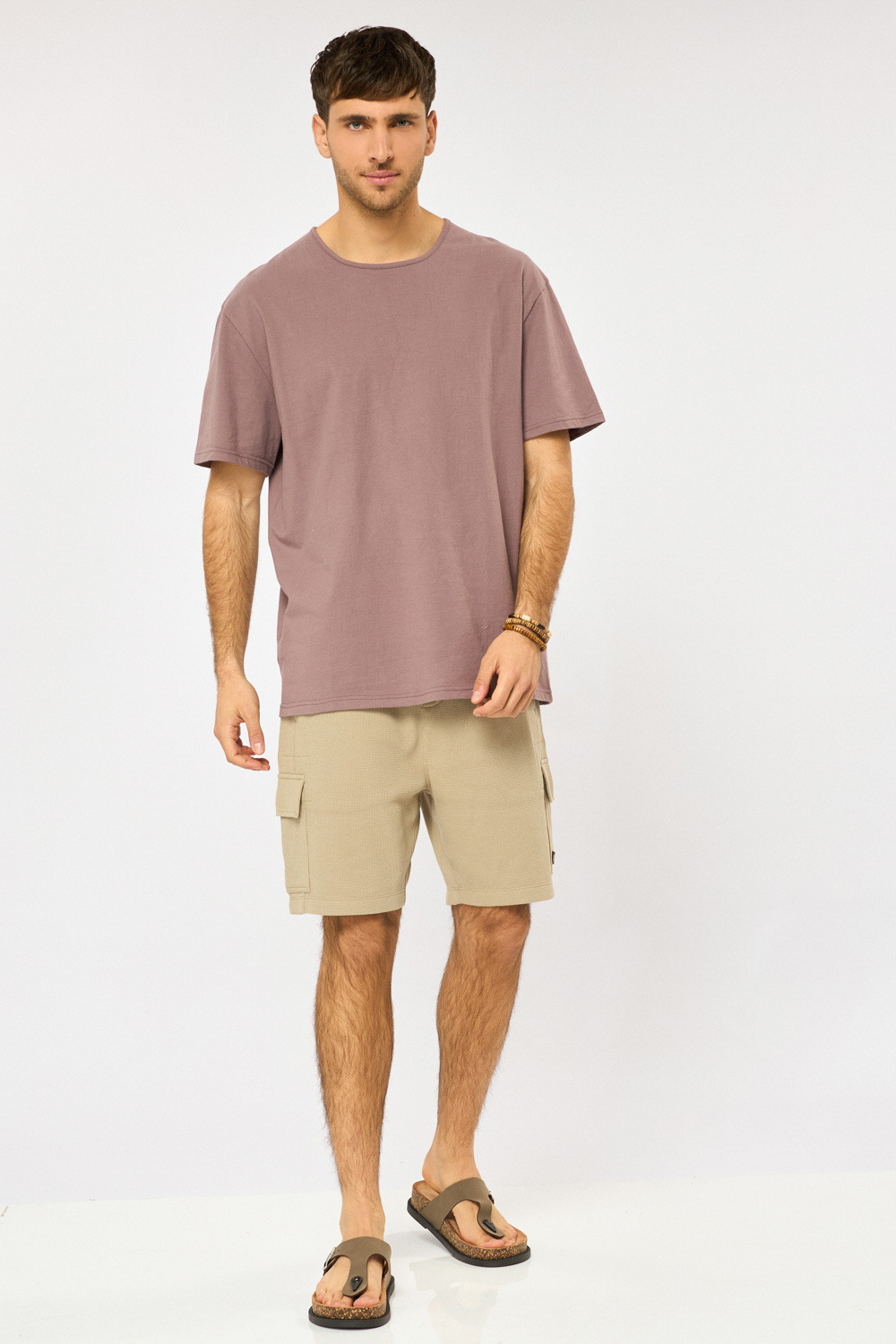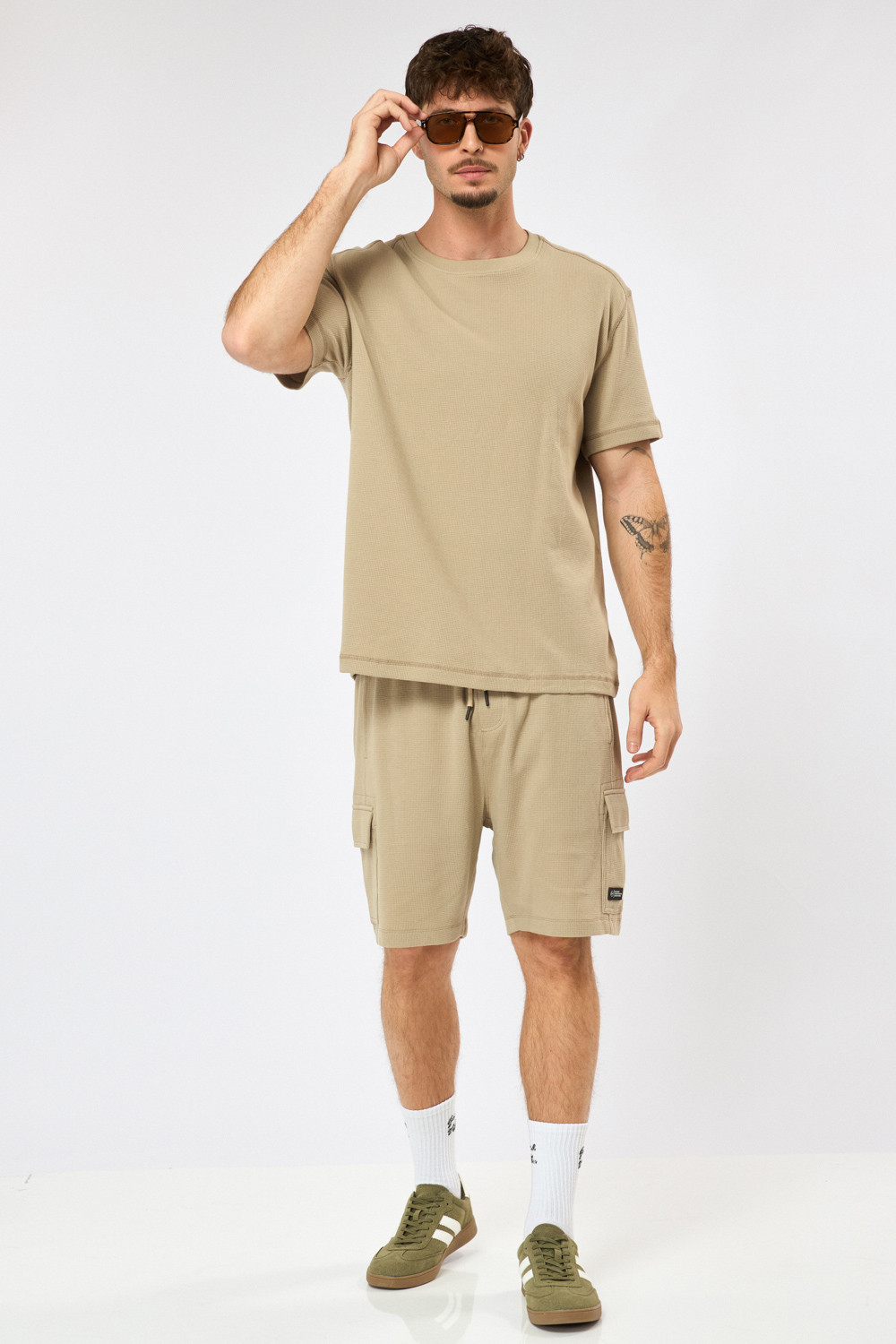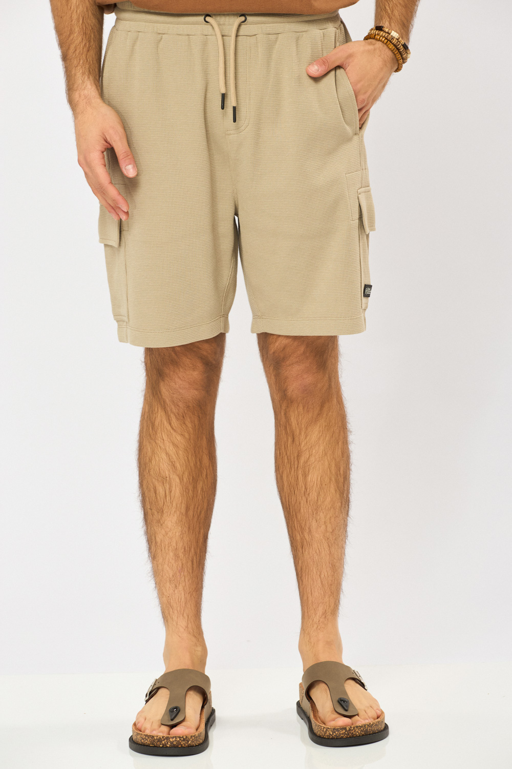 מכנסי ברמודה דגמ"ח מבד וואפל עם טקסטורה חגורת גומי ושרוך לנוחות גזרה רגילה