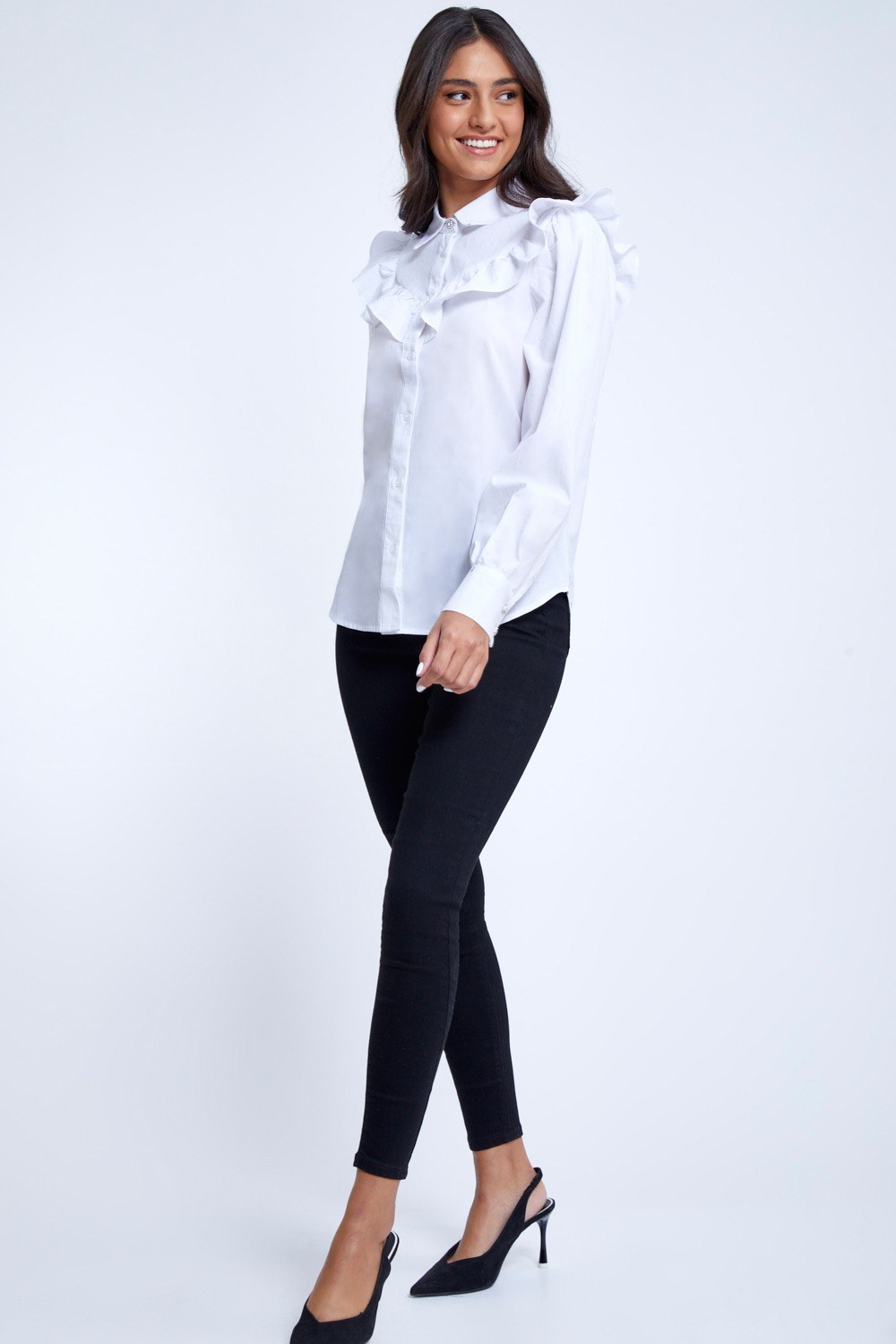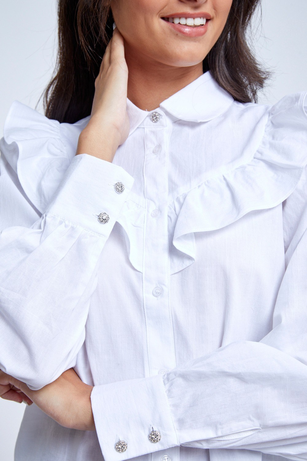 חולצה לבנה עם וולן מרשים