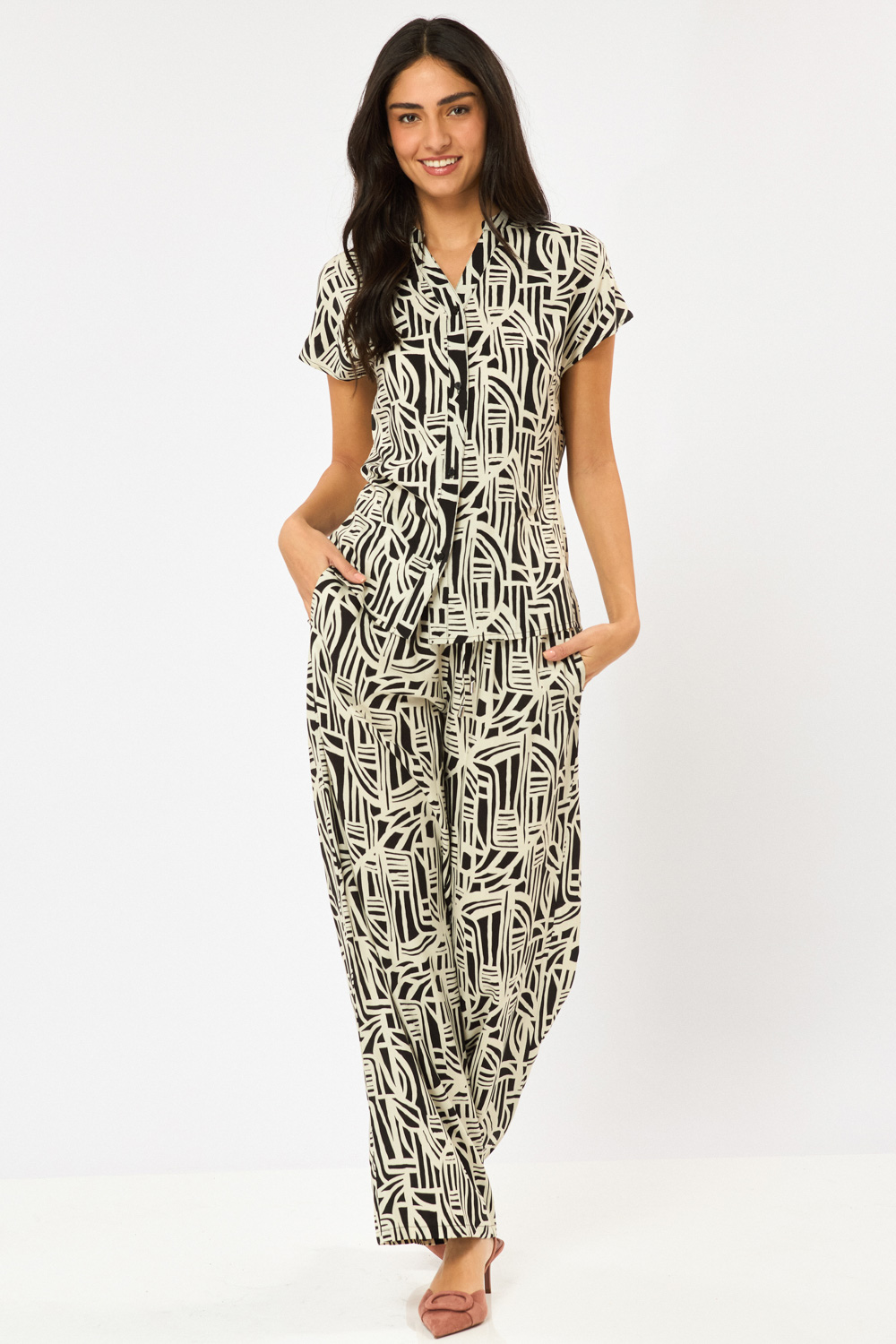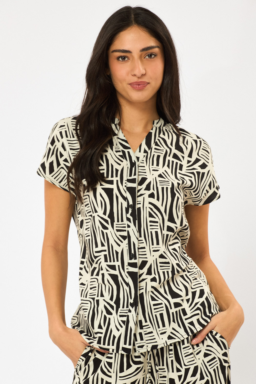 חולצה מכופתרת בהדפס גאומטרי מופשט