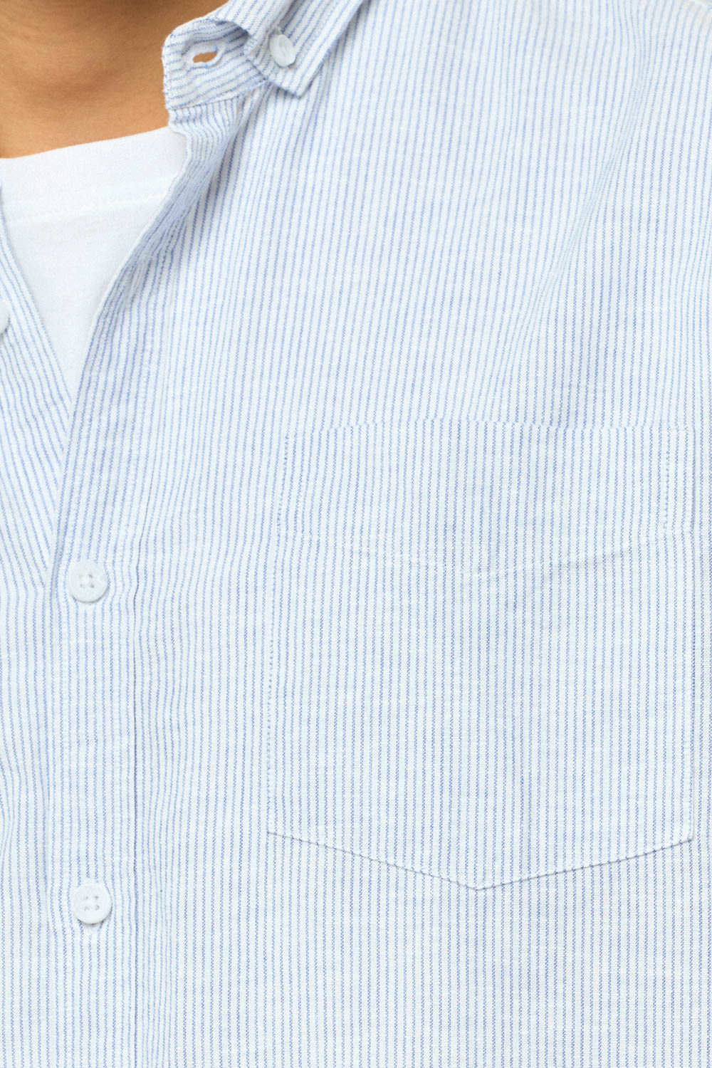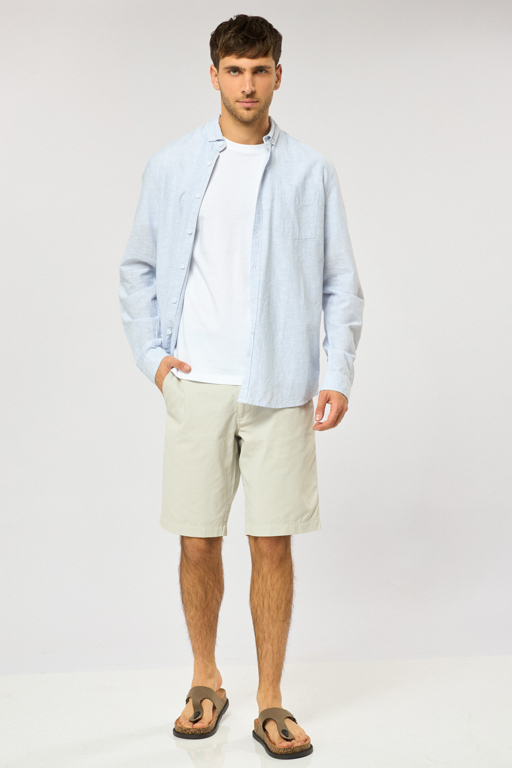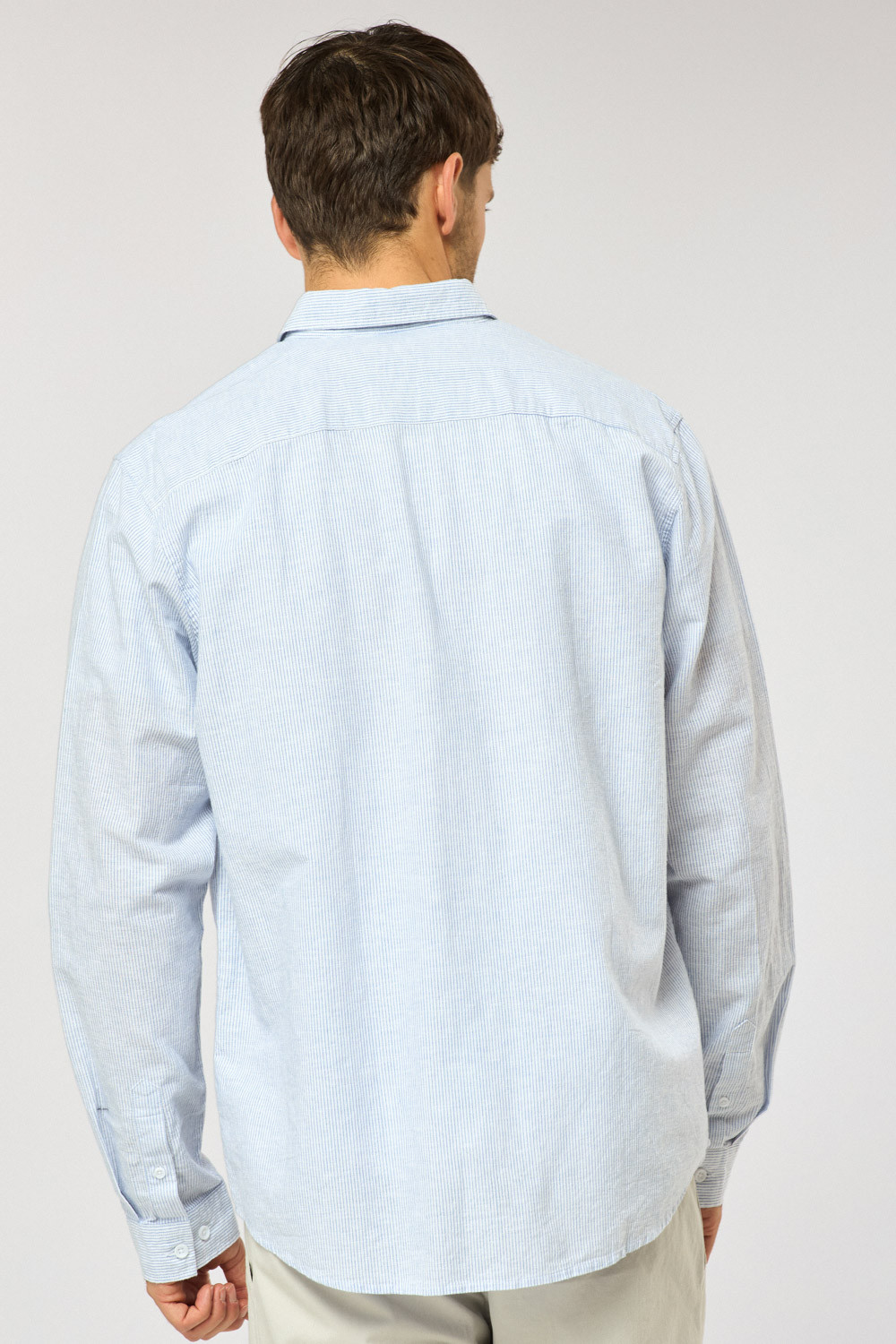 חולצה מכופתרת בשילוב פשתן גזרה רחבה - כחול בהיר