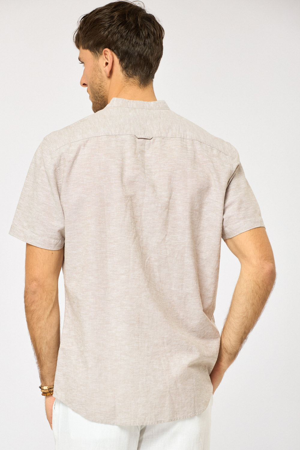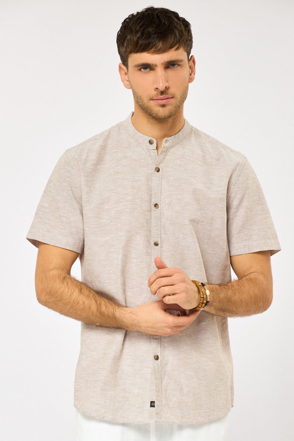 חולצה מכופתרת בשילוב פשתן צווארון סיני – אופוויט