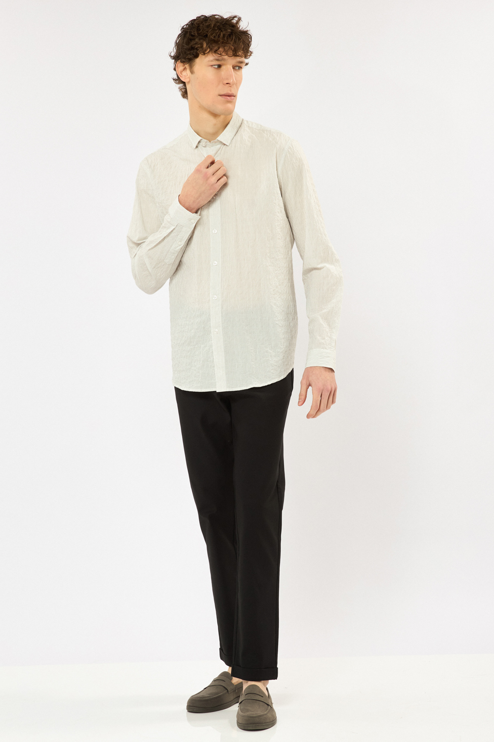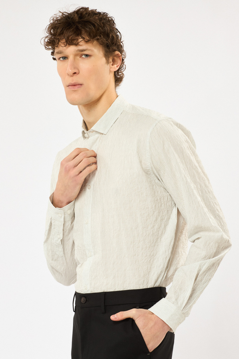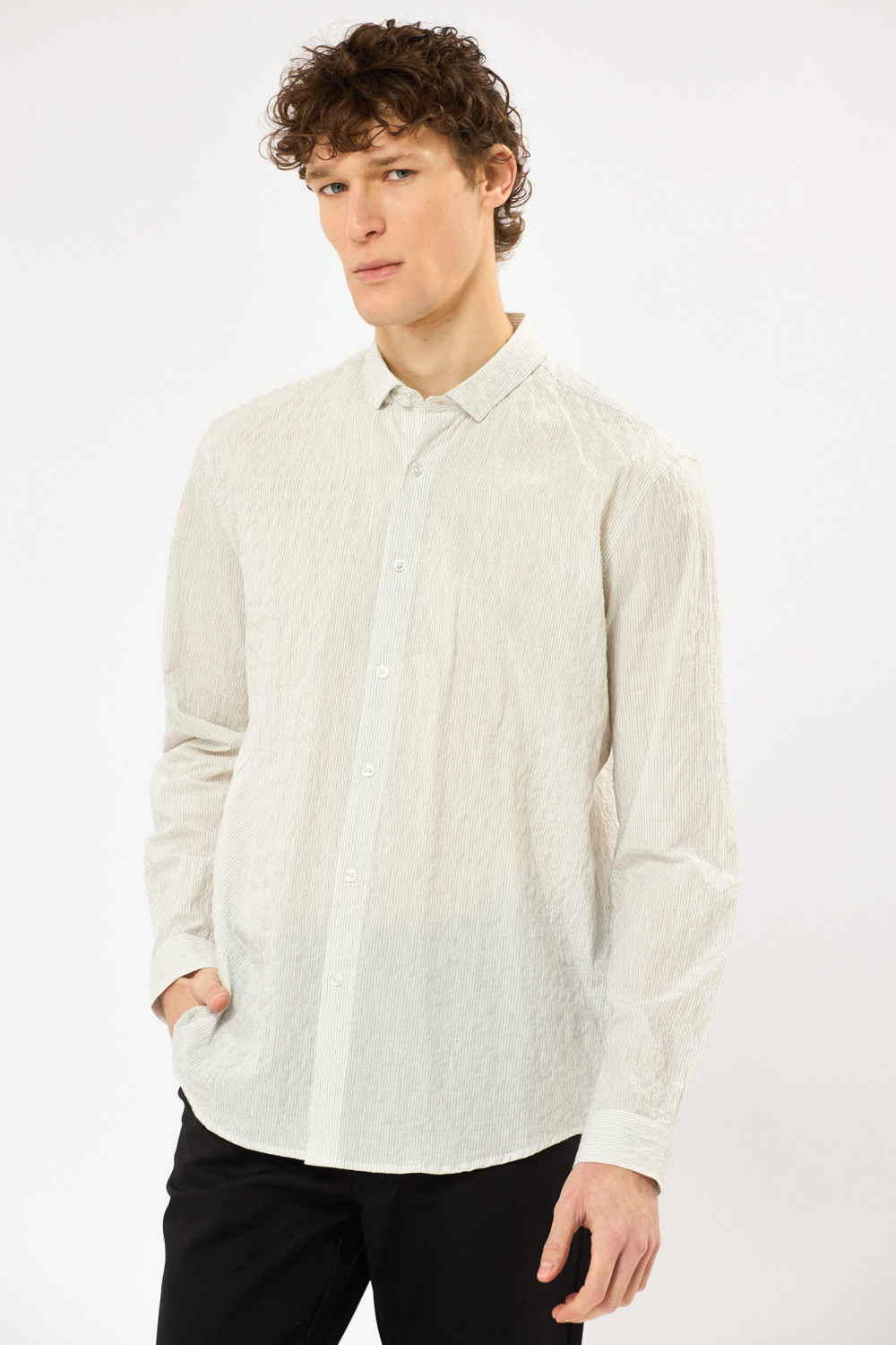 חולצת מכופתרת בד פסים עם אפקט קמטים גזרה רחבה comfort fit