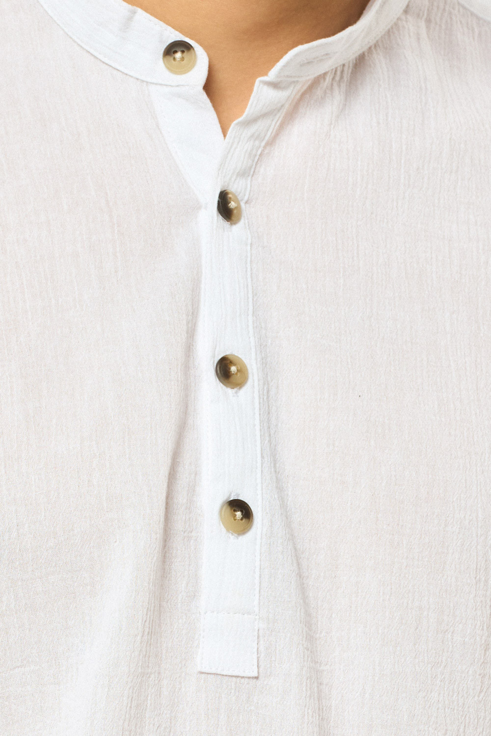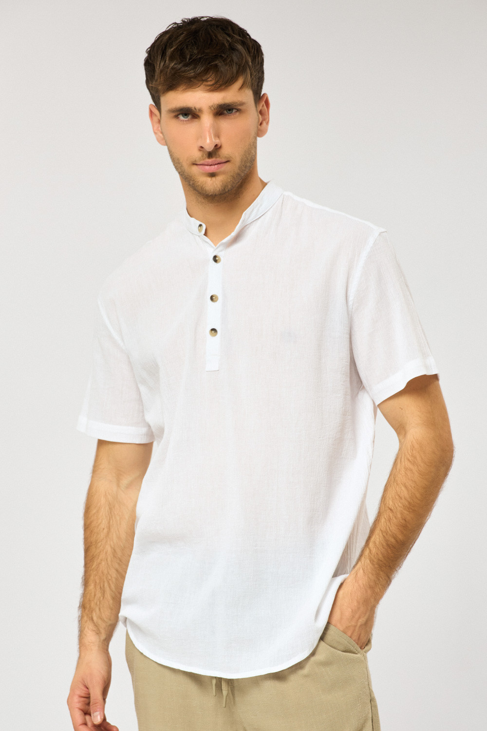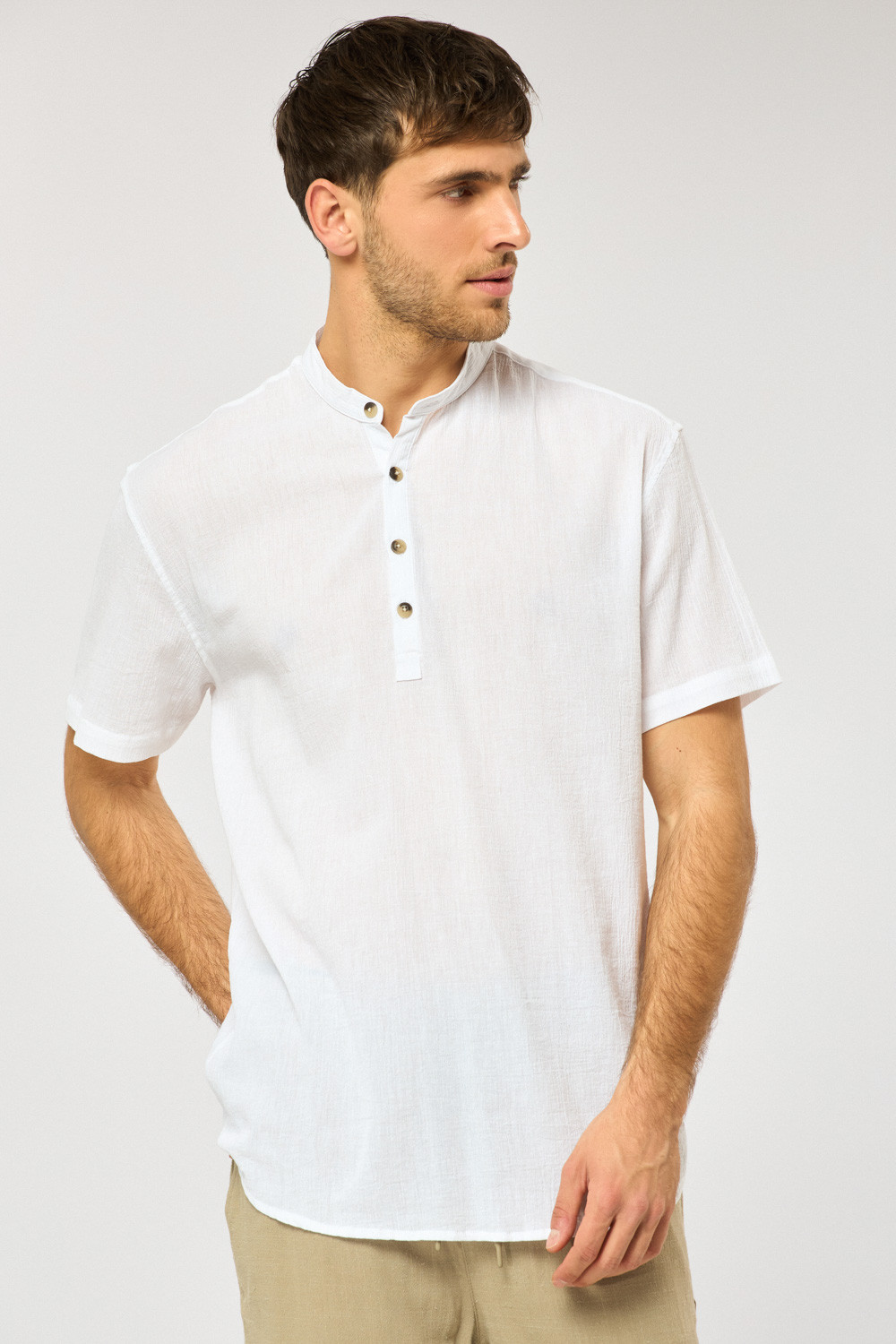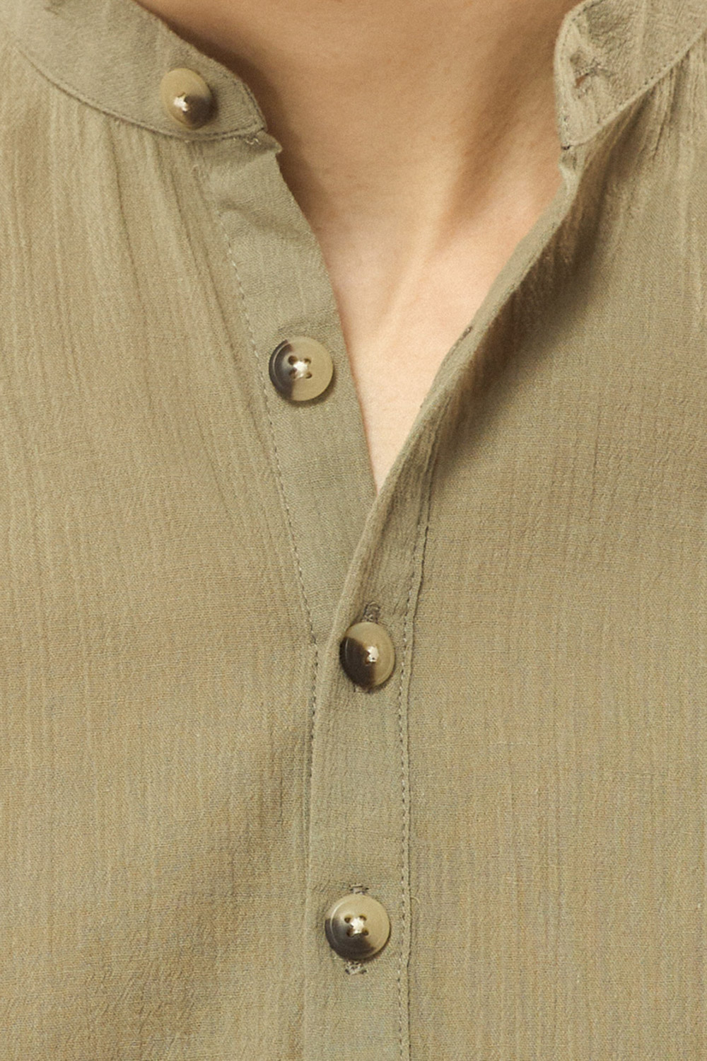 חולצת גלביה בד crep דק וקייצי עם אפקט קמטים צווארון סיני גזרה רחבה comfort fit