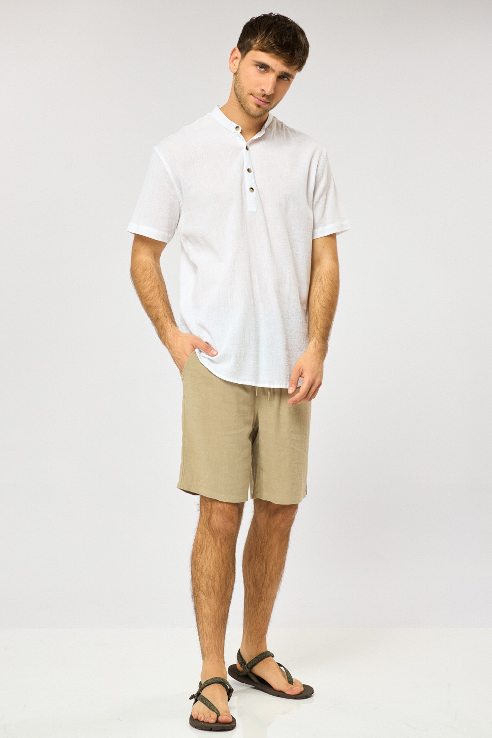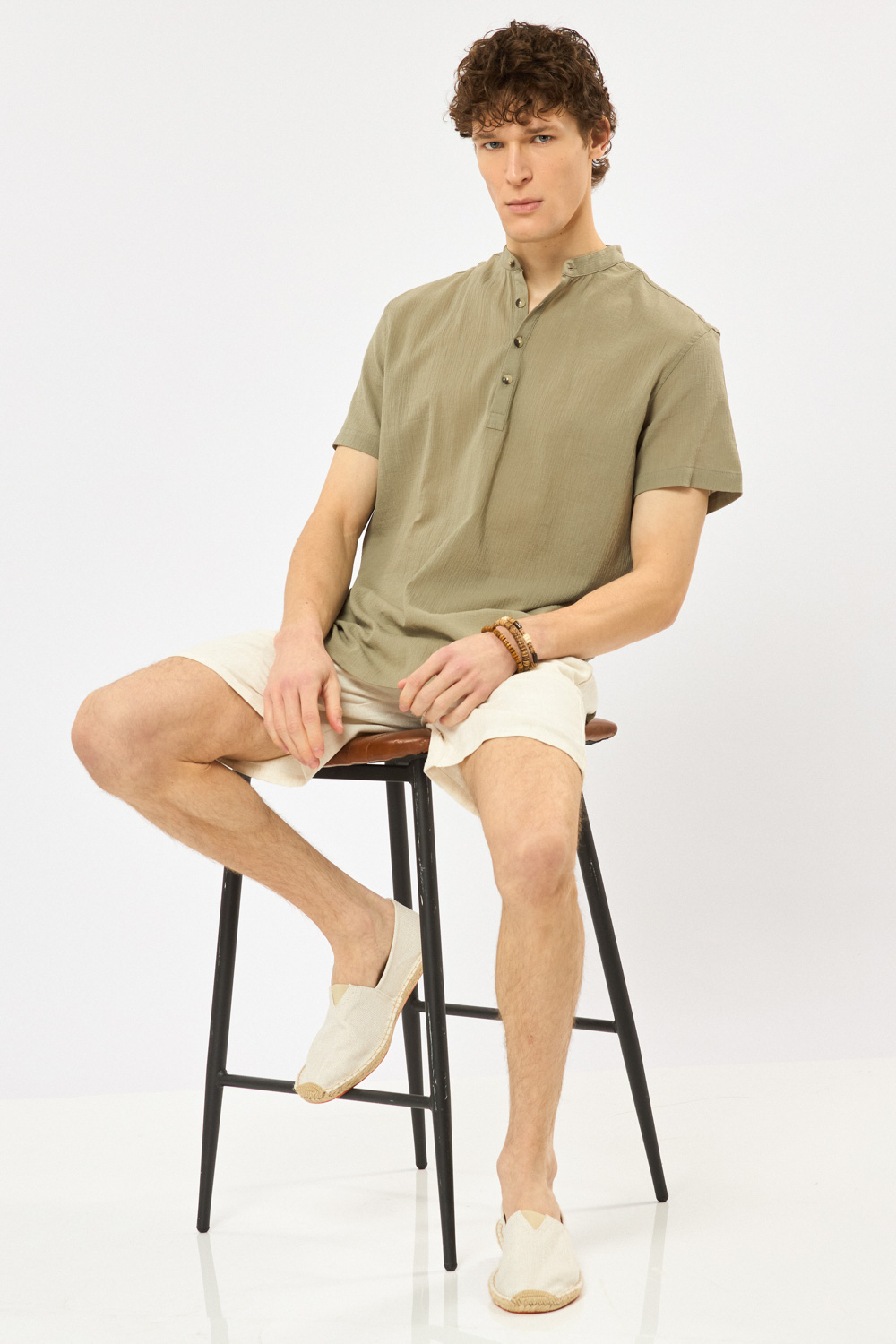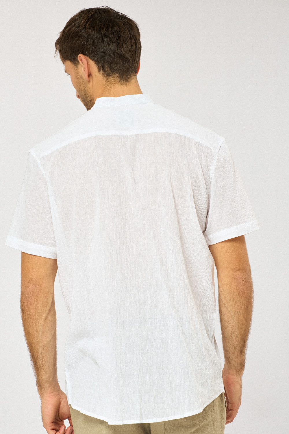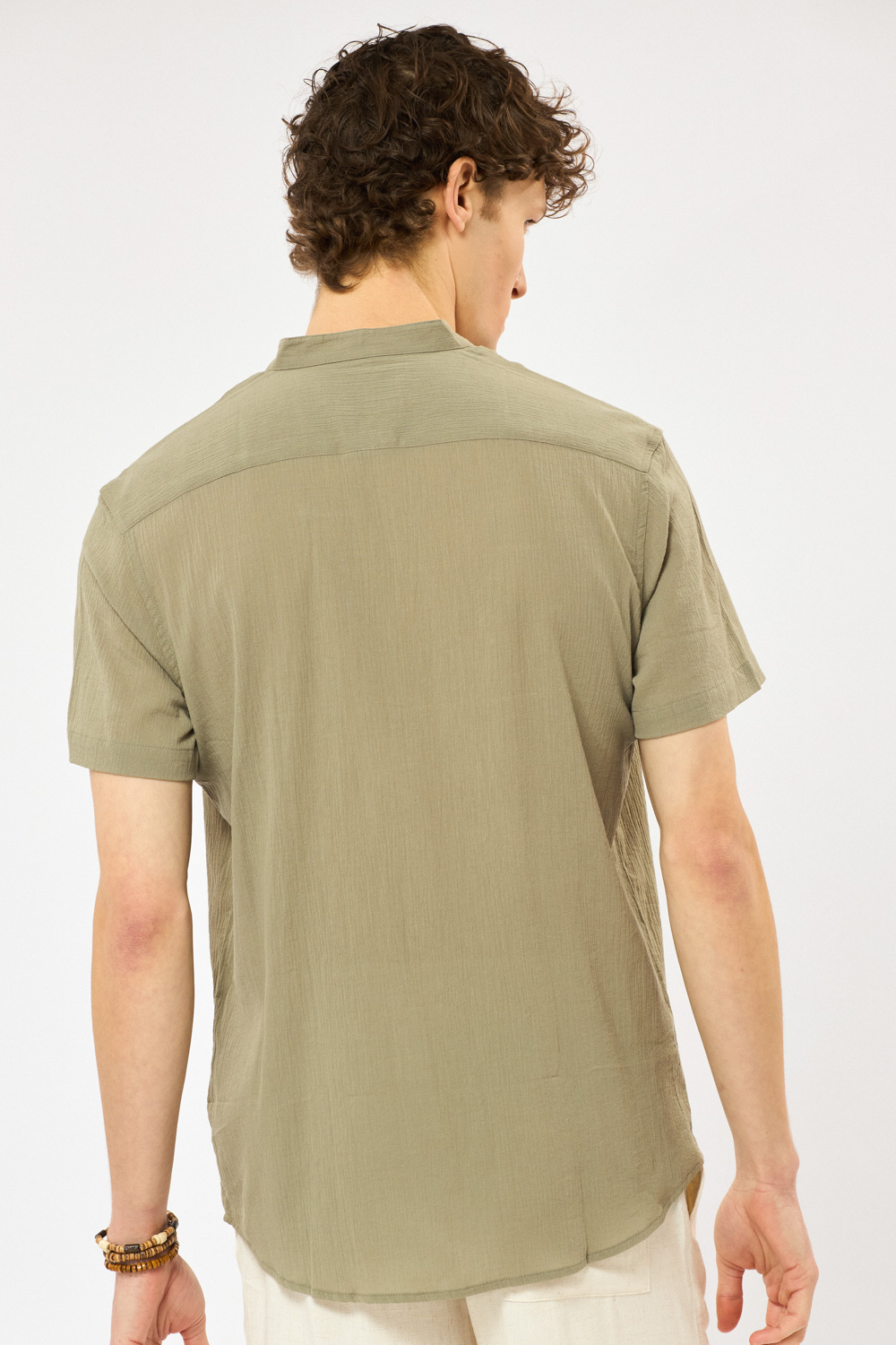 חולצת גלביה בד crep דק וקייצי עם אפקט קמטים צווארון סיני גזרה רחבה comfort fit