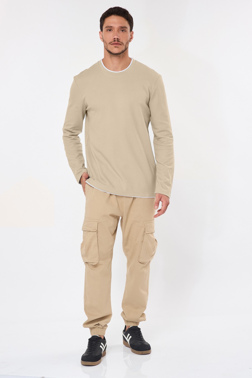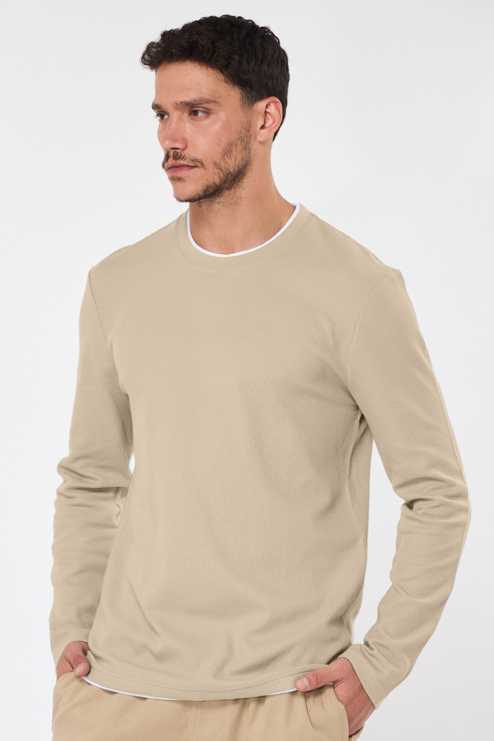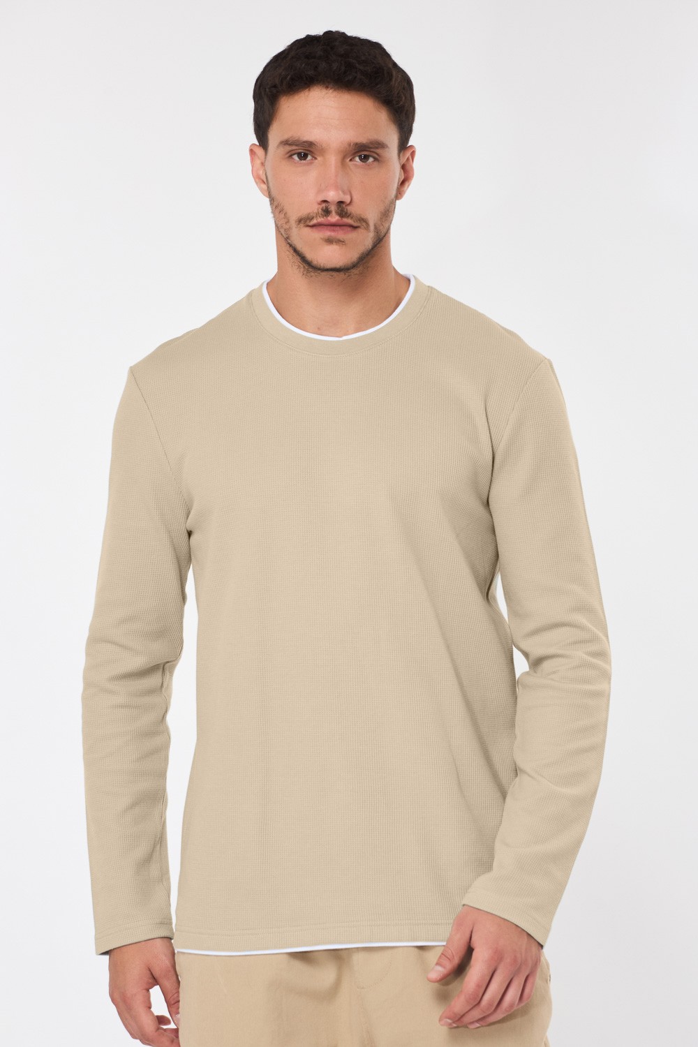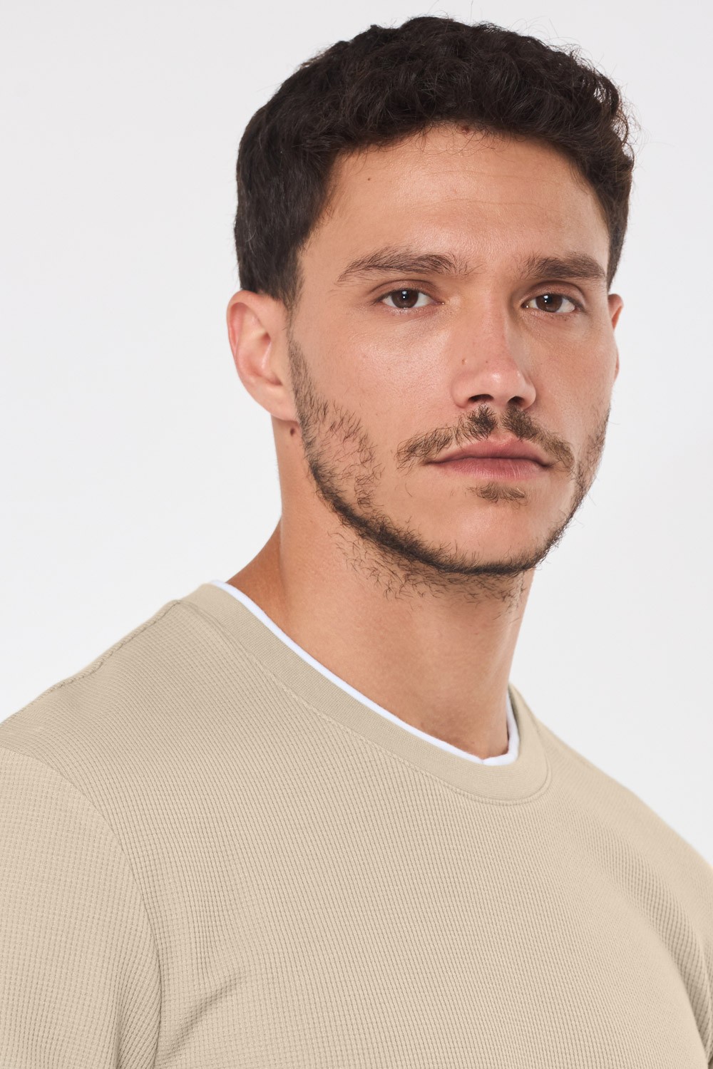 חולצת טי ואפל צווארון כפול -- אפרפר