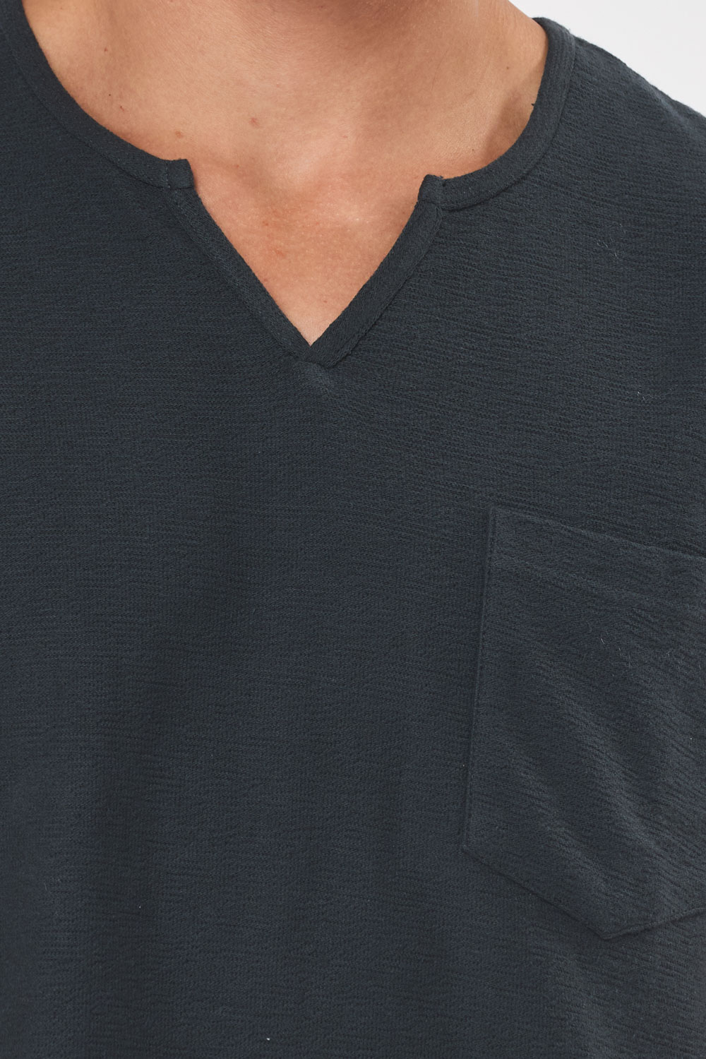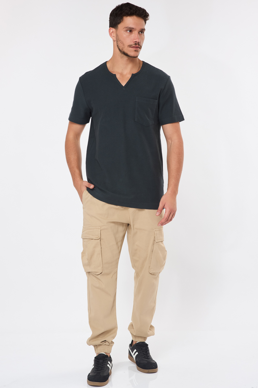 חולצת טי מבד סלאב הפוך עבה heavy weight צווארון ספליט וכיס חזה