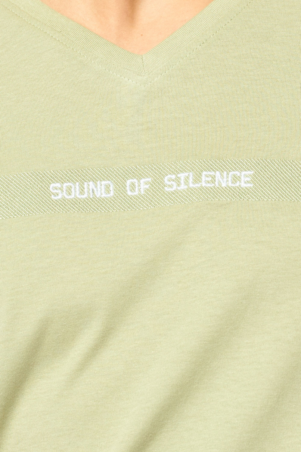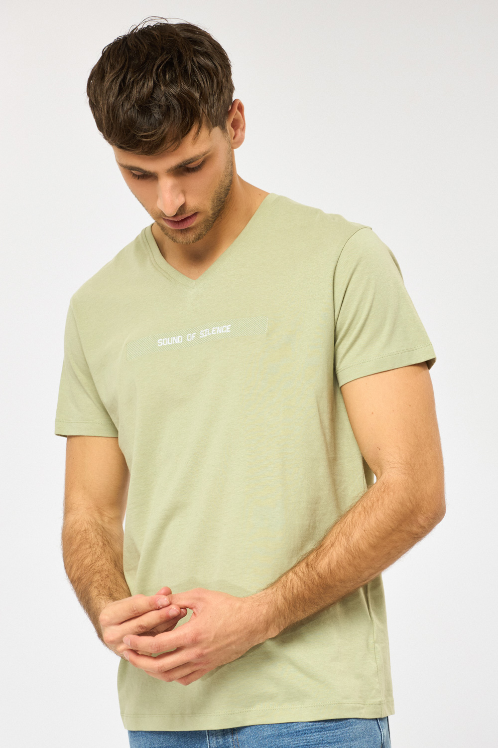 חולצת טי עם רקמה קדמית צווארון וי בד נעים למגע גזרה רגילה