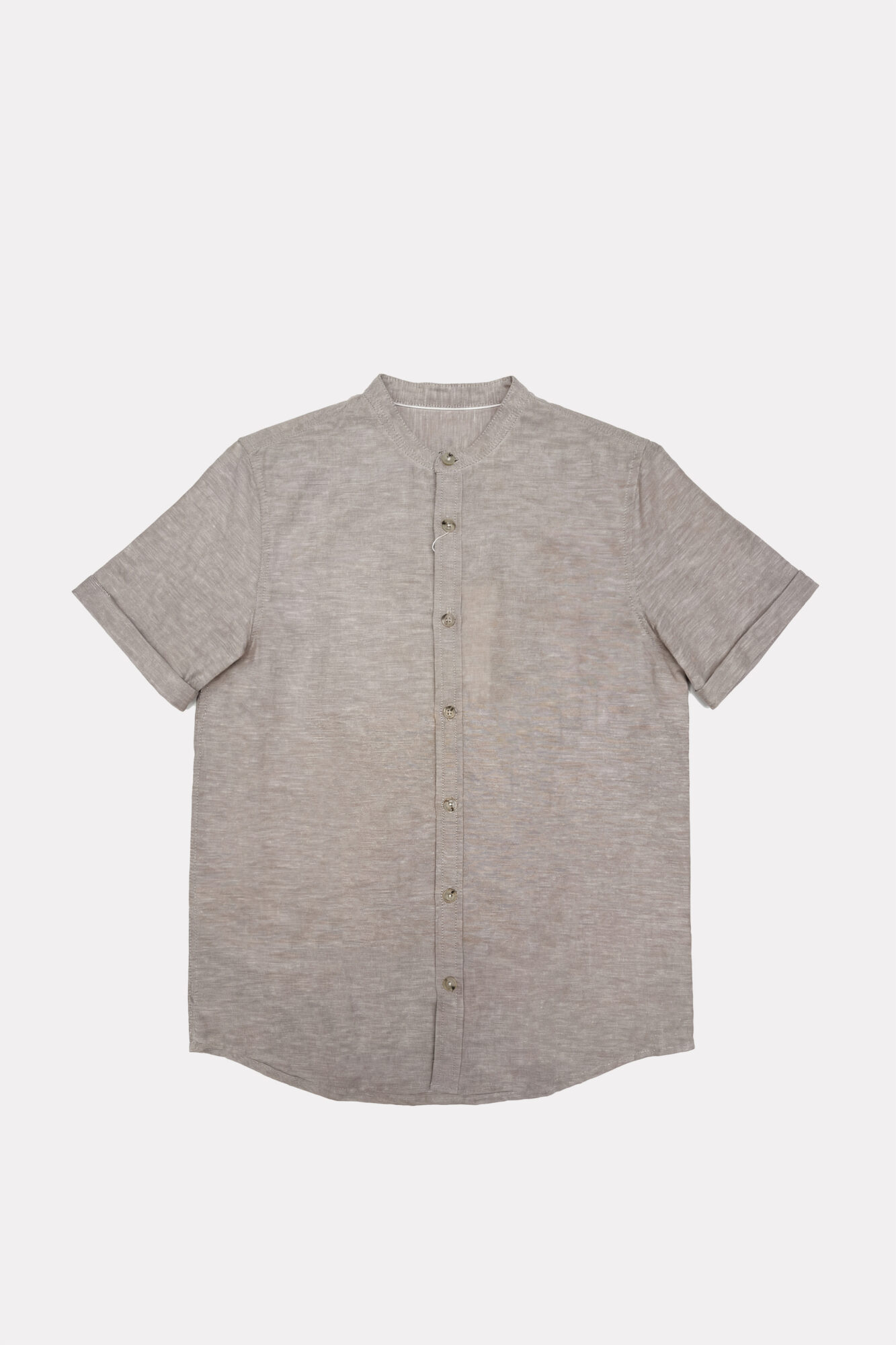 חולצת ילדים במראה פשתן צווארון סיני – בז'