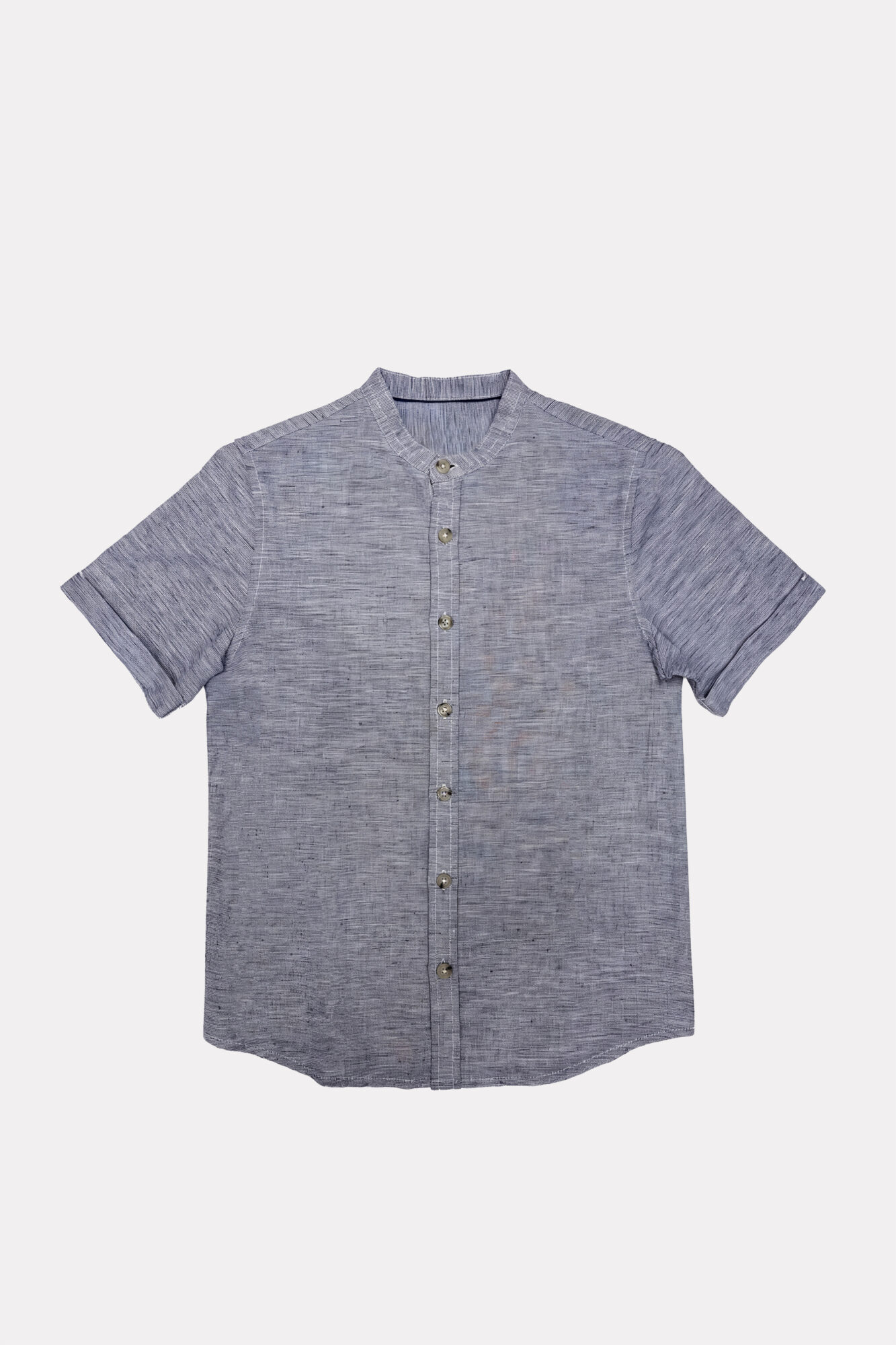 | חולצה מכופתרת חגיגית לילדים בד בשילוב פשתן צווארון סיניהרכב בד: 65% כותנה, 35% פשתן |
