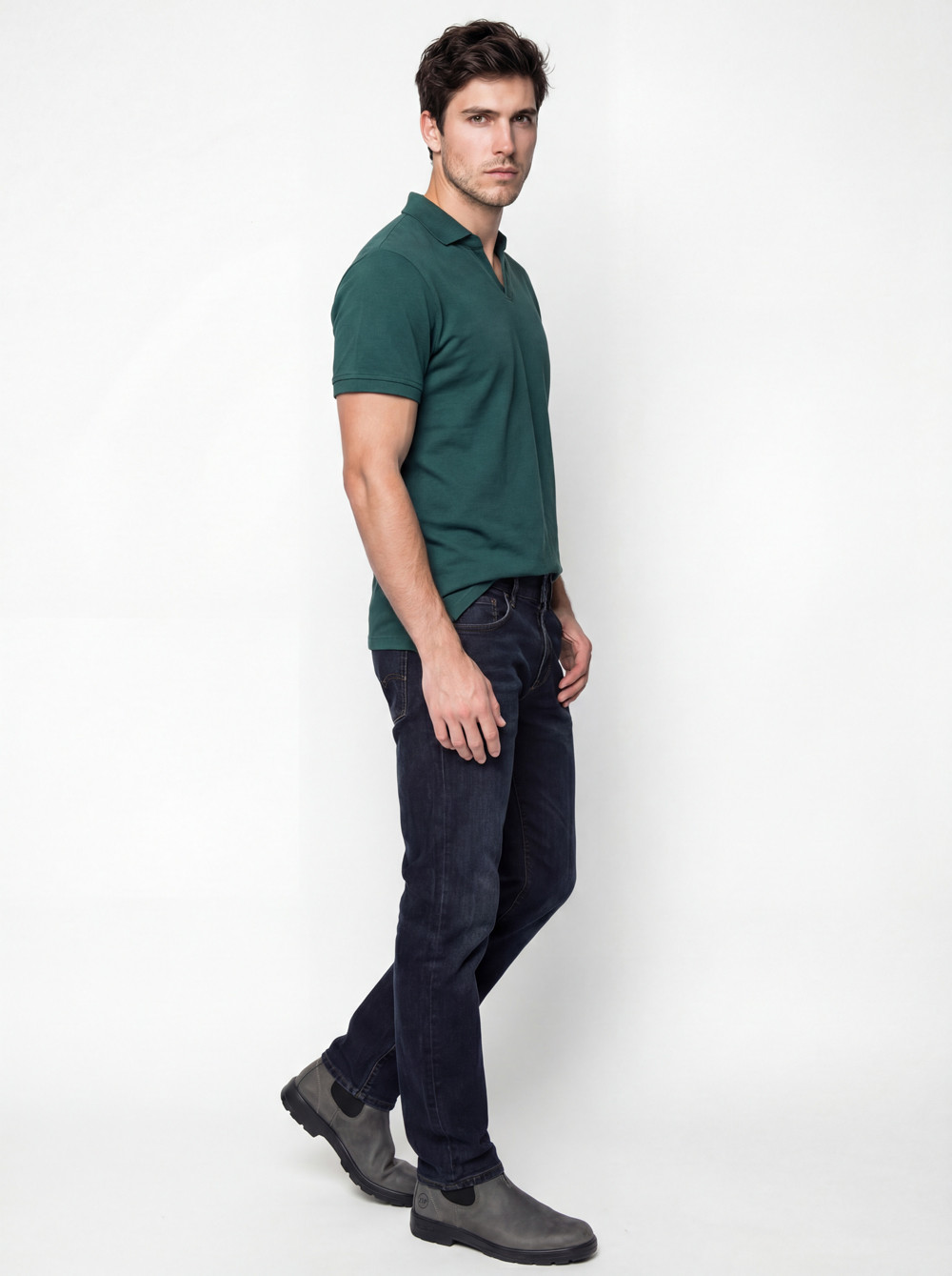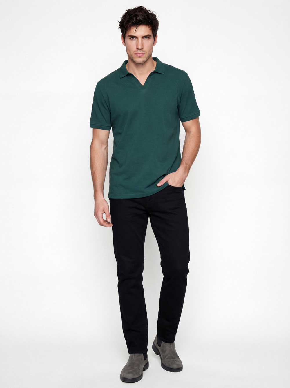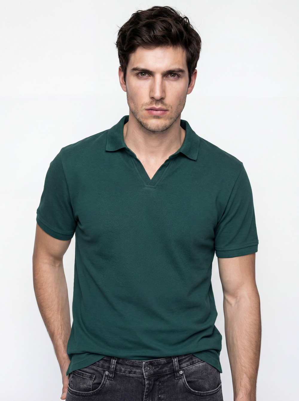 חולצת פולו פיקה ספליט - ירוק עמוק