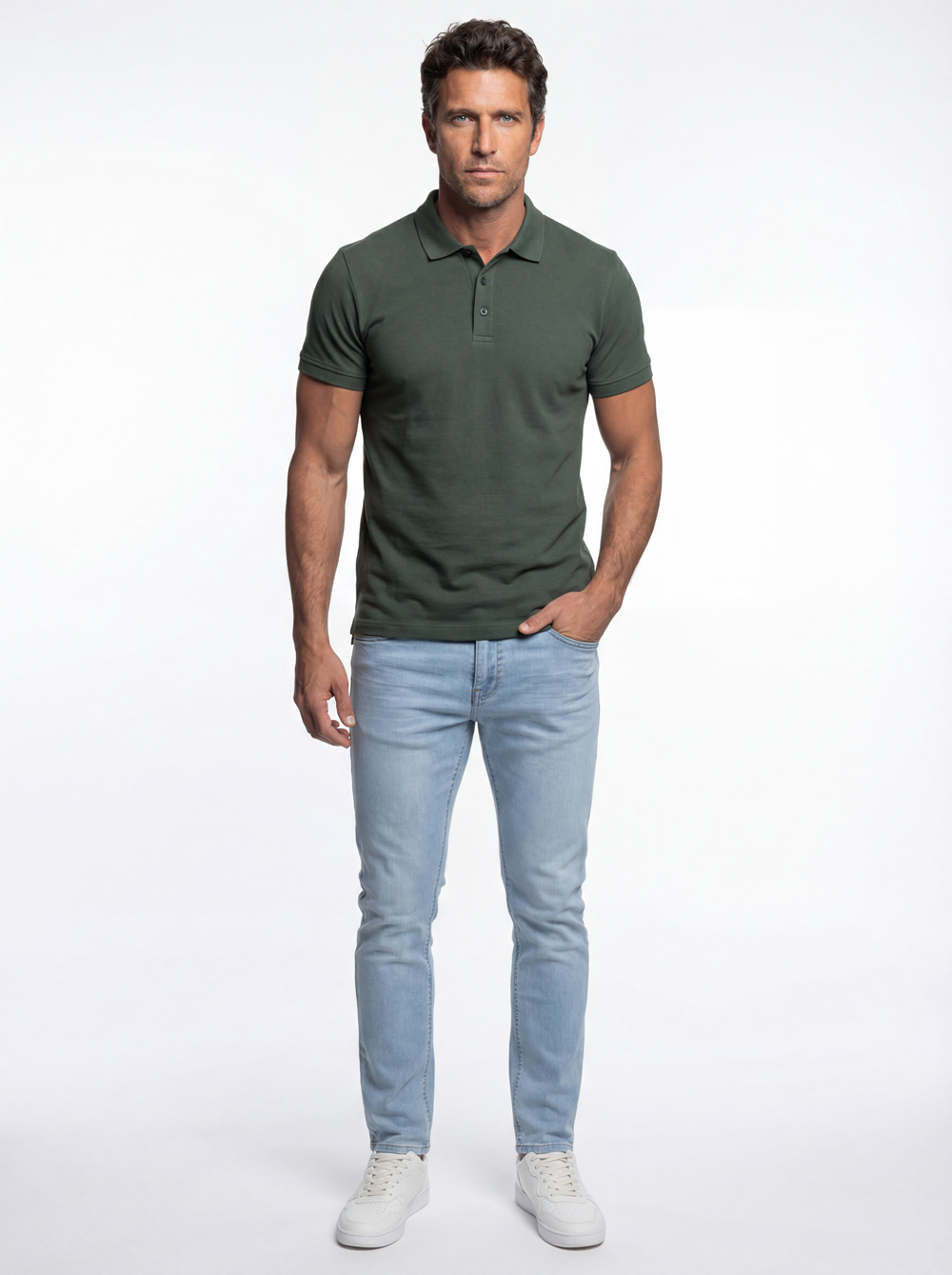 | חולצת פולו פיקה בסיסית הרכב בד: 35% כותנה, 65% פוליאסטר גובה דוגמן: 192 ס"מ מידה דוגמן: L |