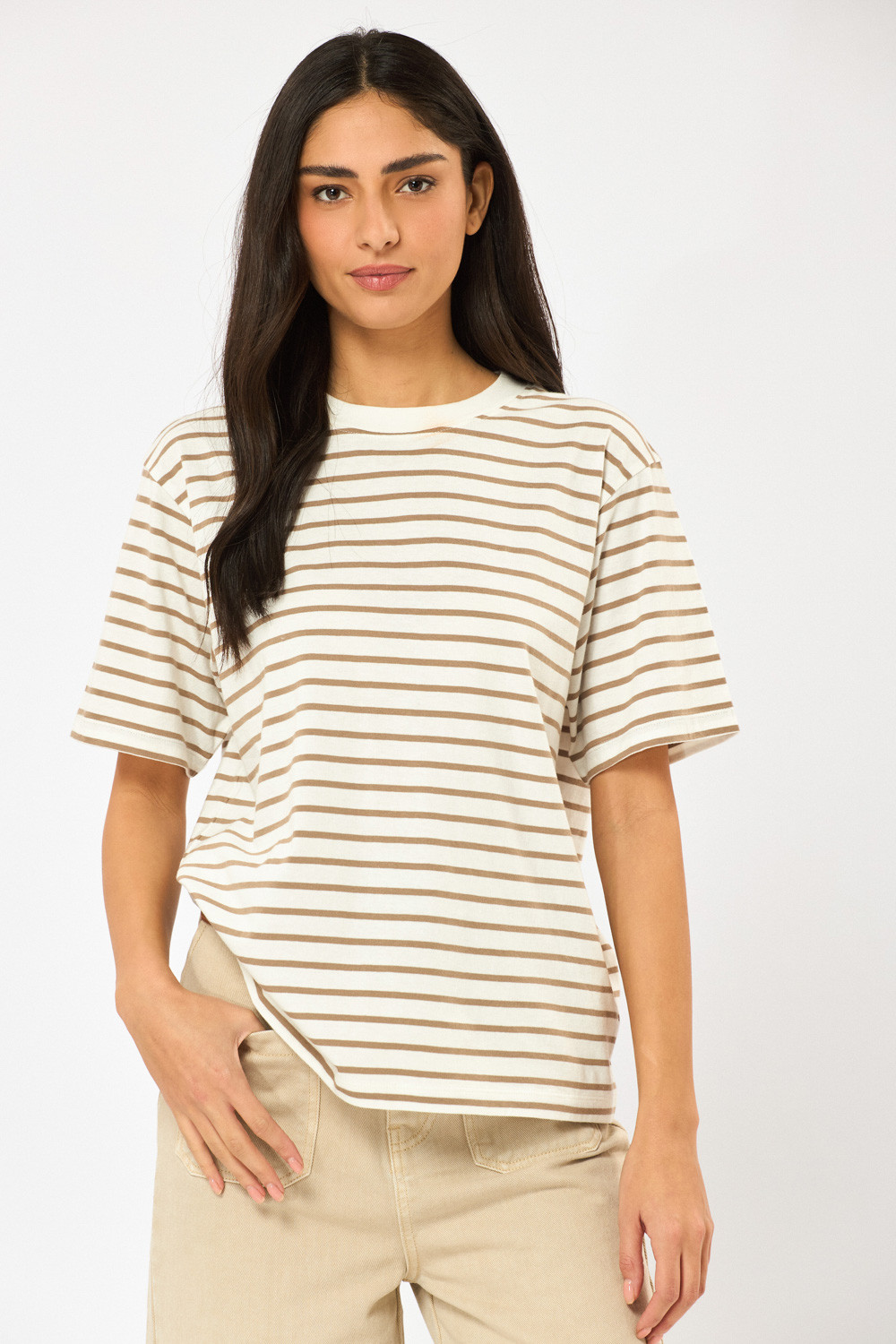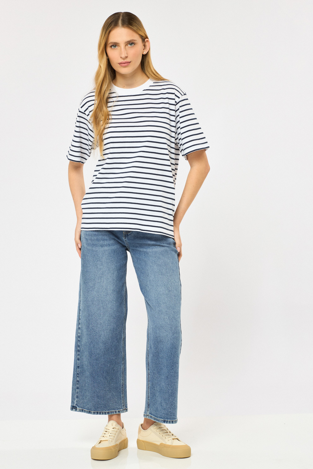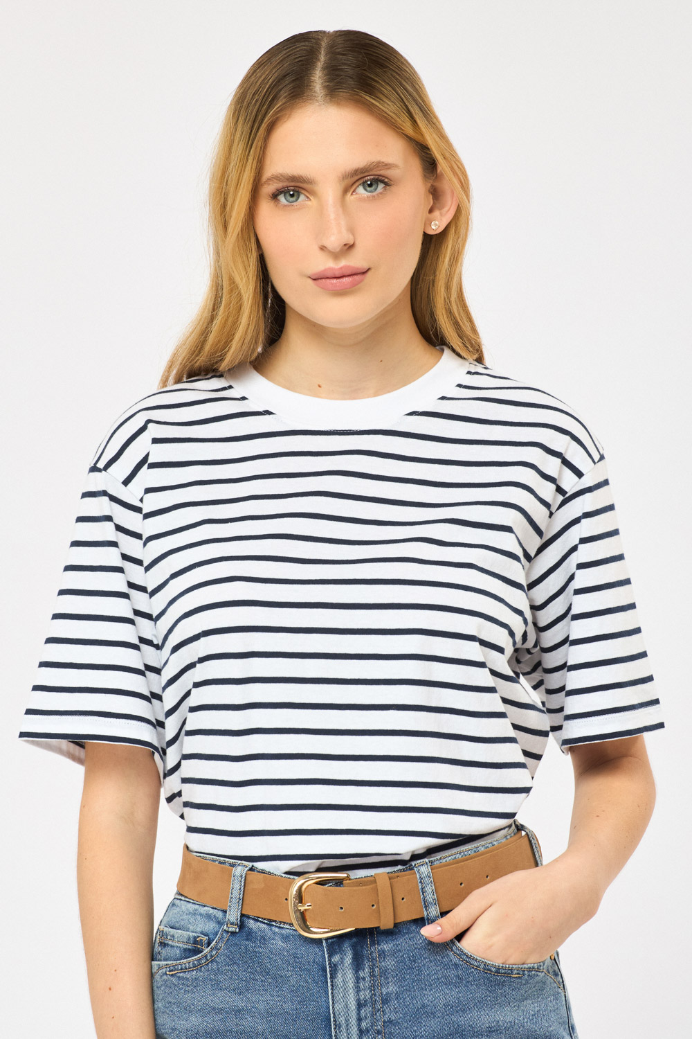 טי שירט עם צווארון עגול, גזרה רחבה בדוגמת פסים.