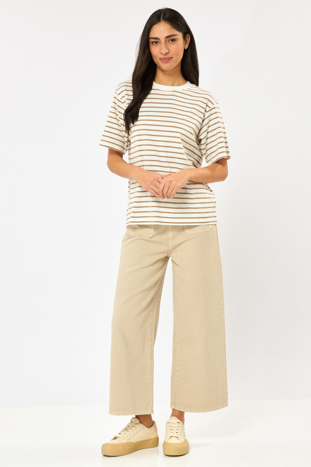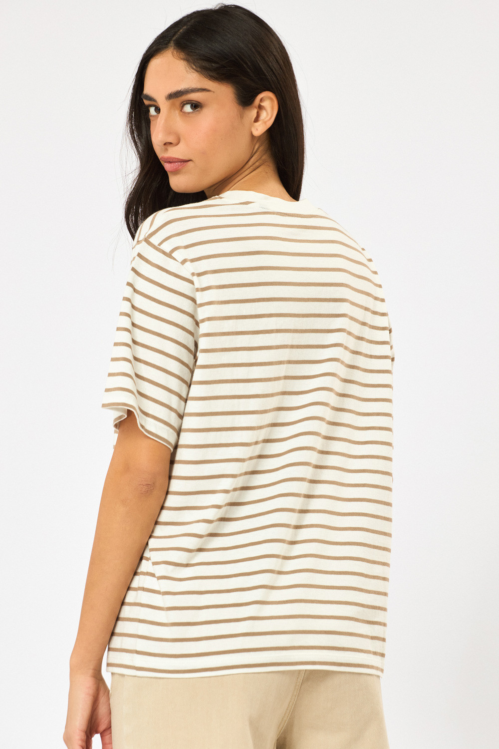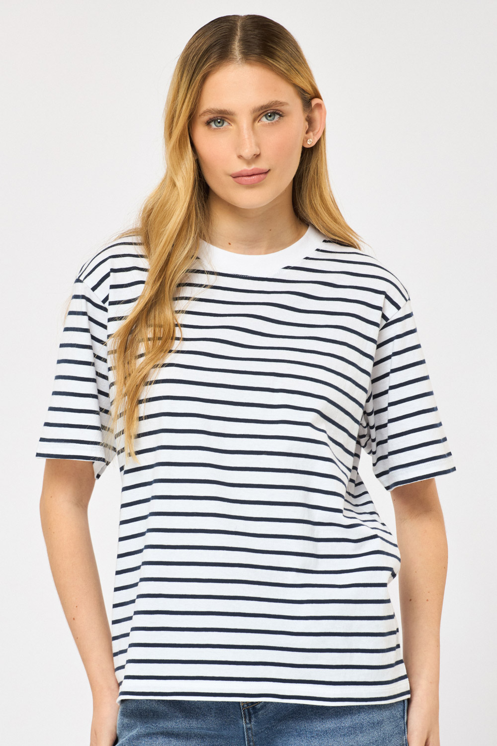 טי שירט עם צווארון עגול, גזרה רחבה בדוגמת פסים.