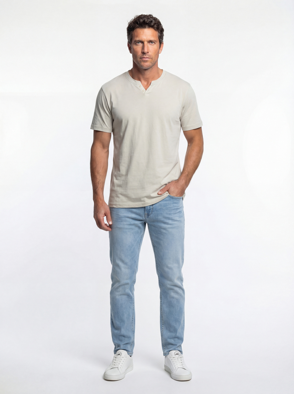 טי בייסיק צווארון ספליט - לבן