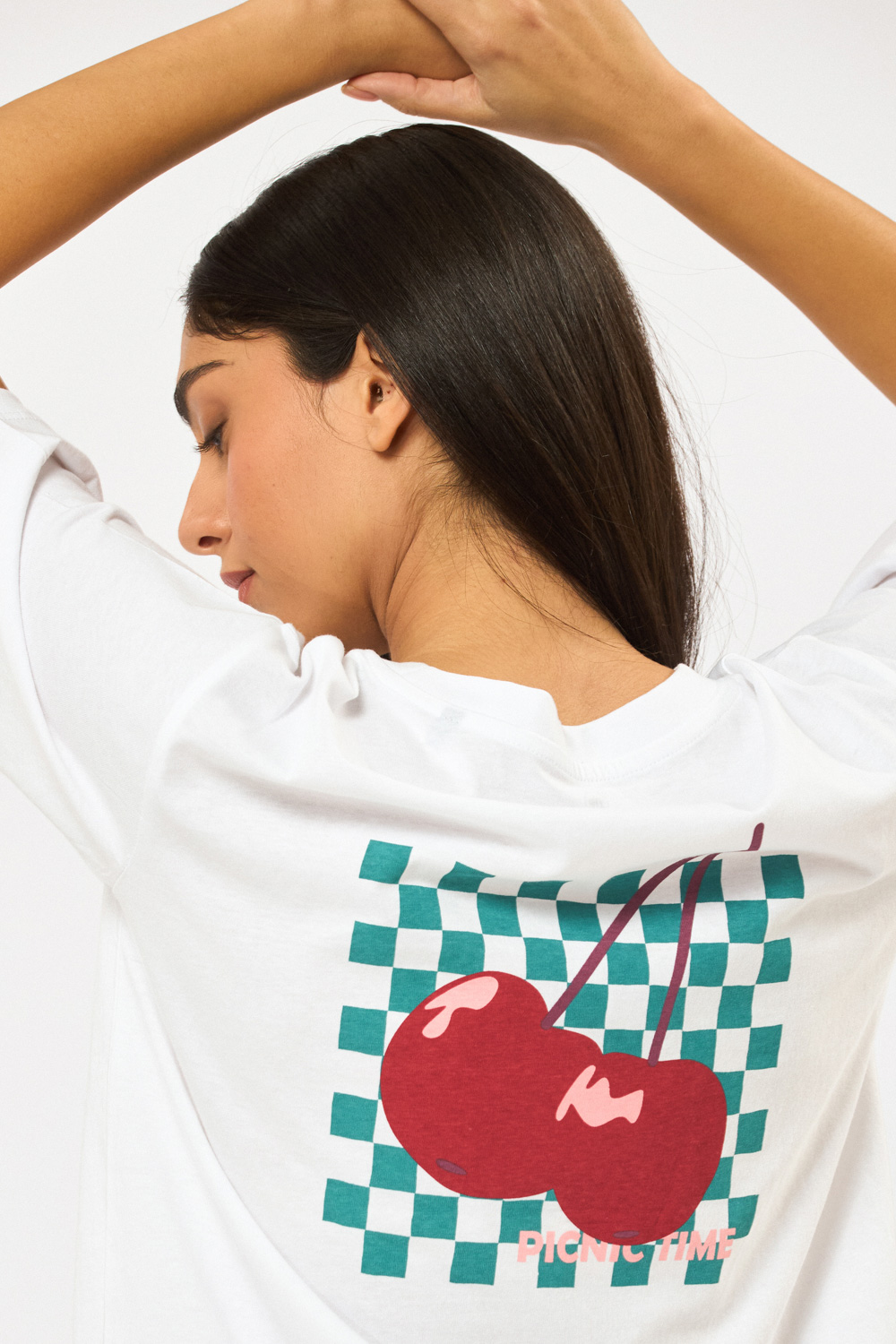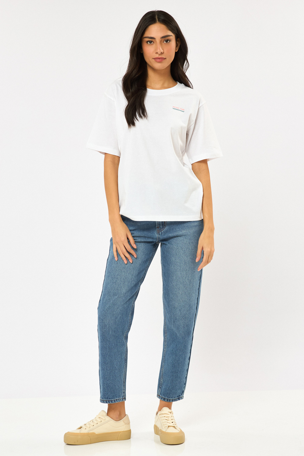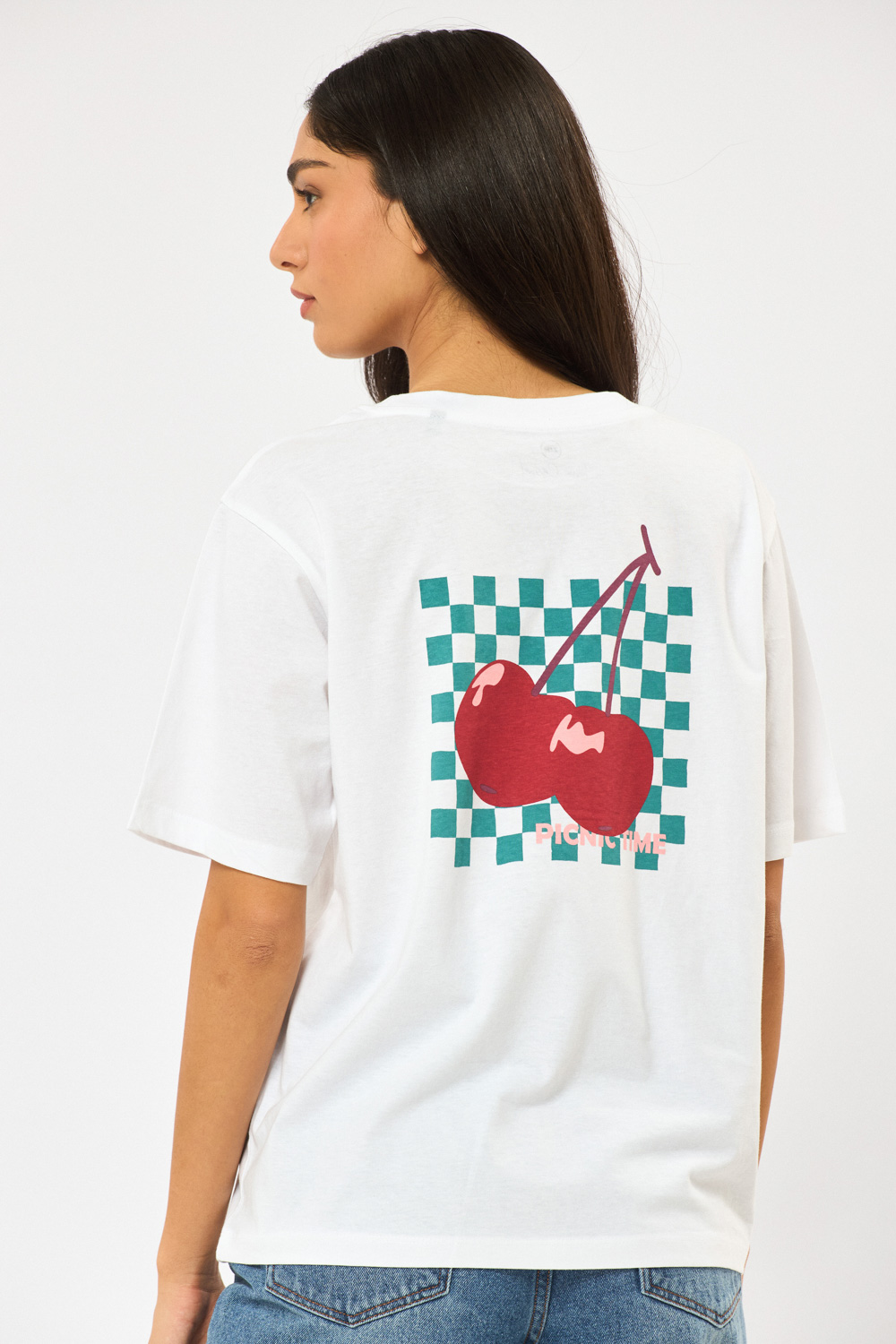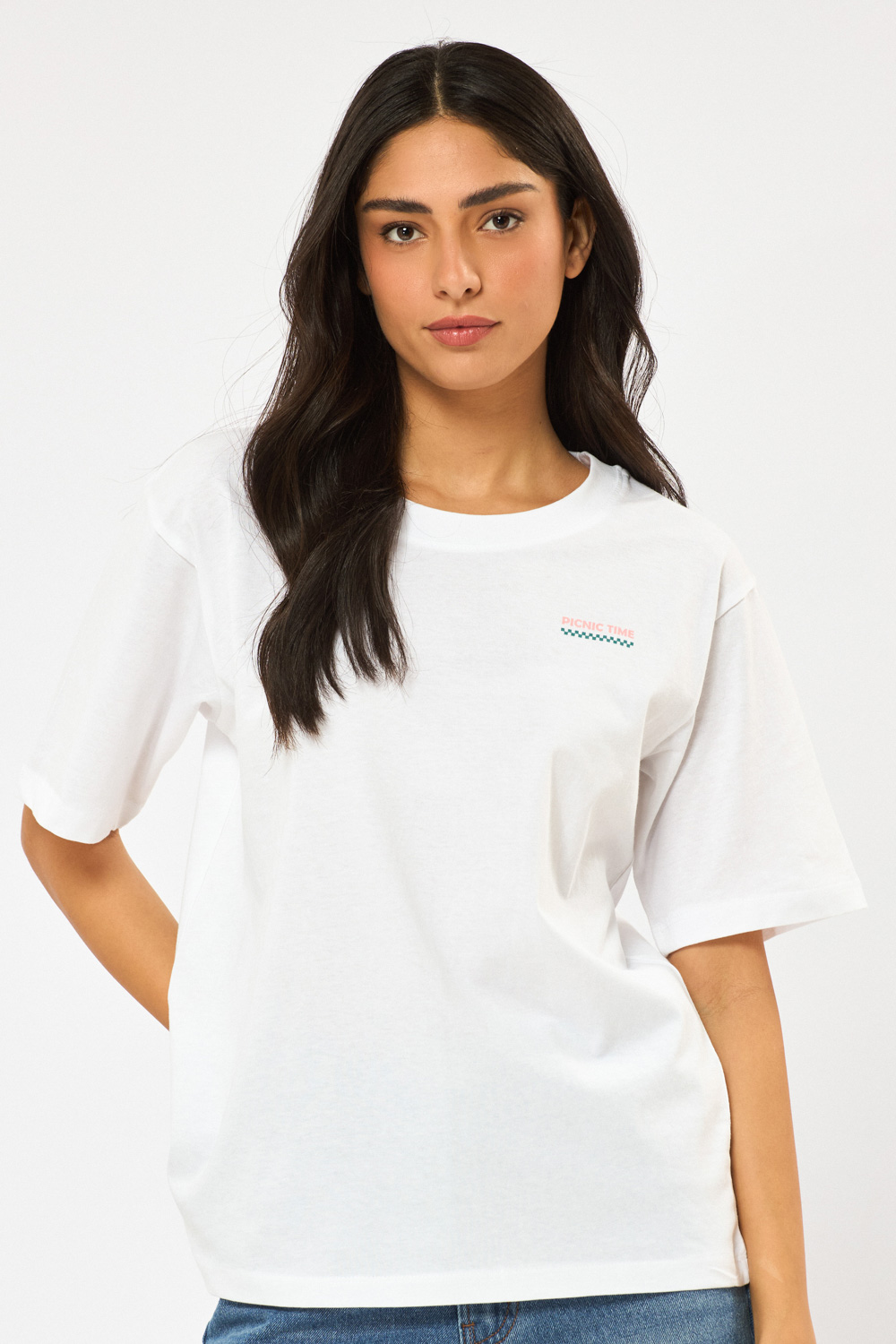 טי שירט עם צווארון עגול, גזרה רחבה הדפס קדמי ואחורי