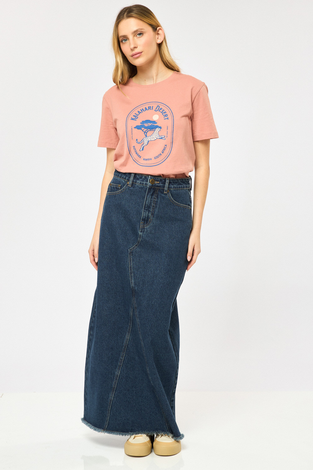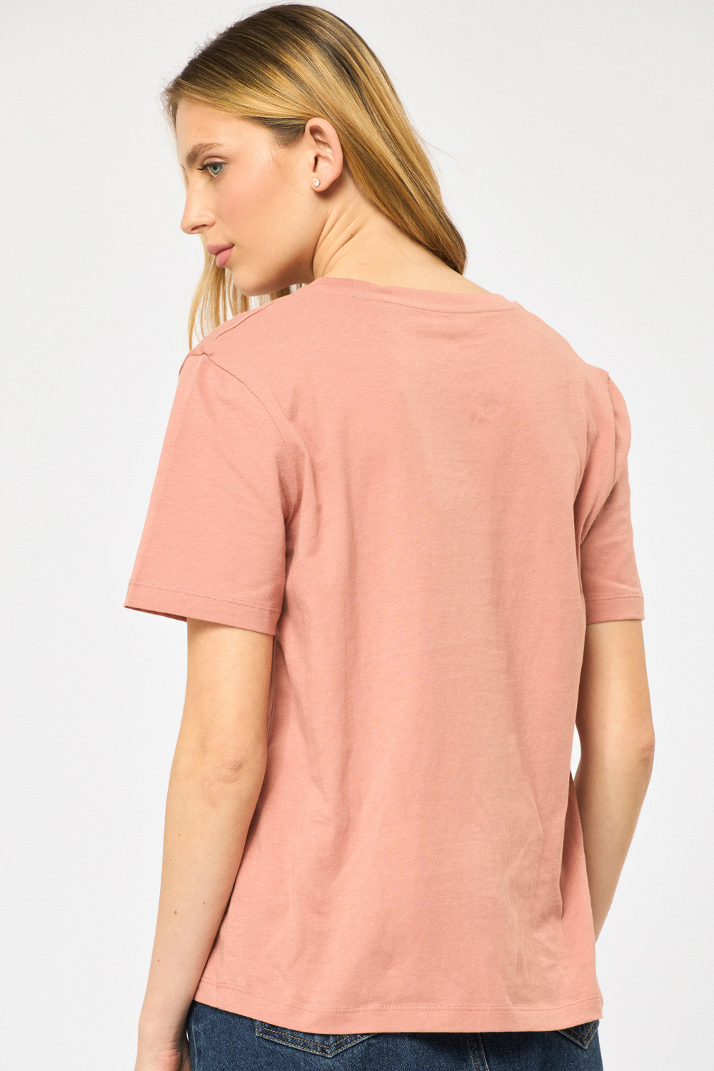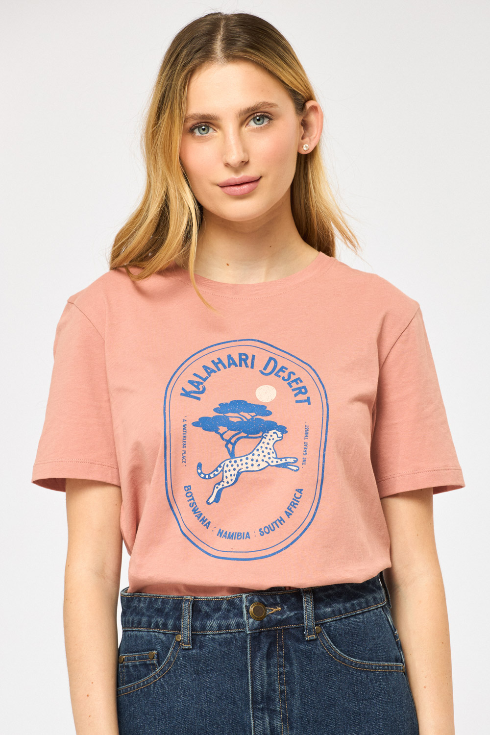 טי שירט עם צווארון עגול, גזרה ישרה הדפס גרפי קדמי