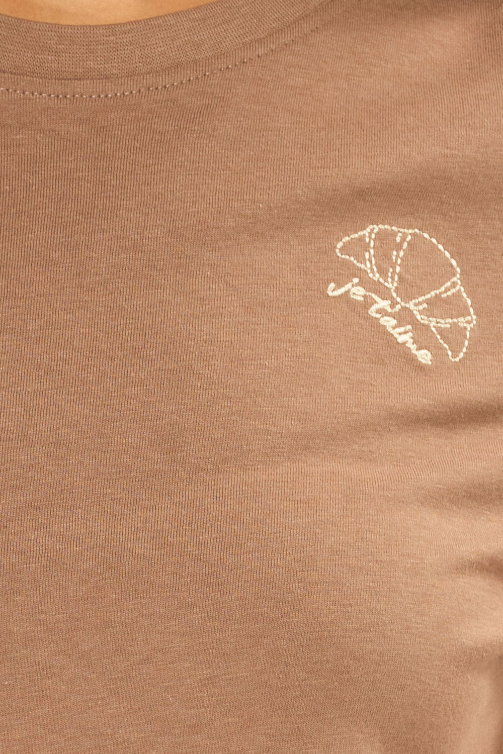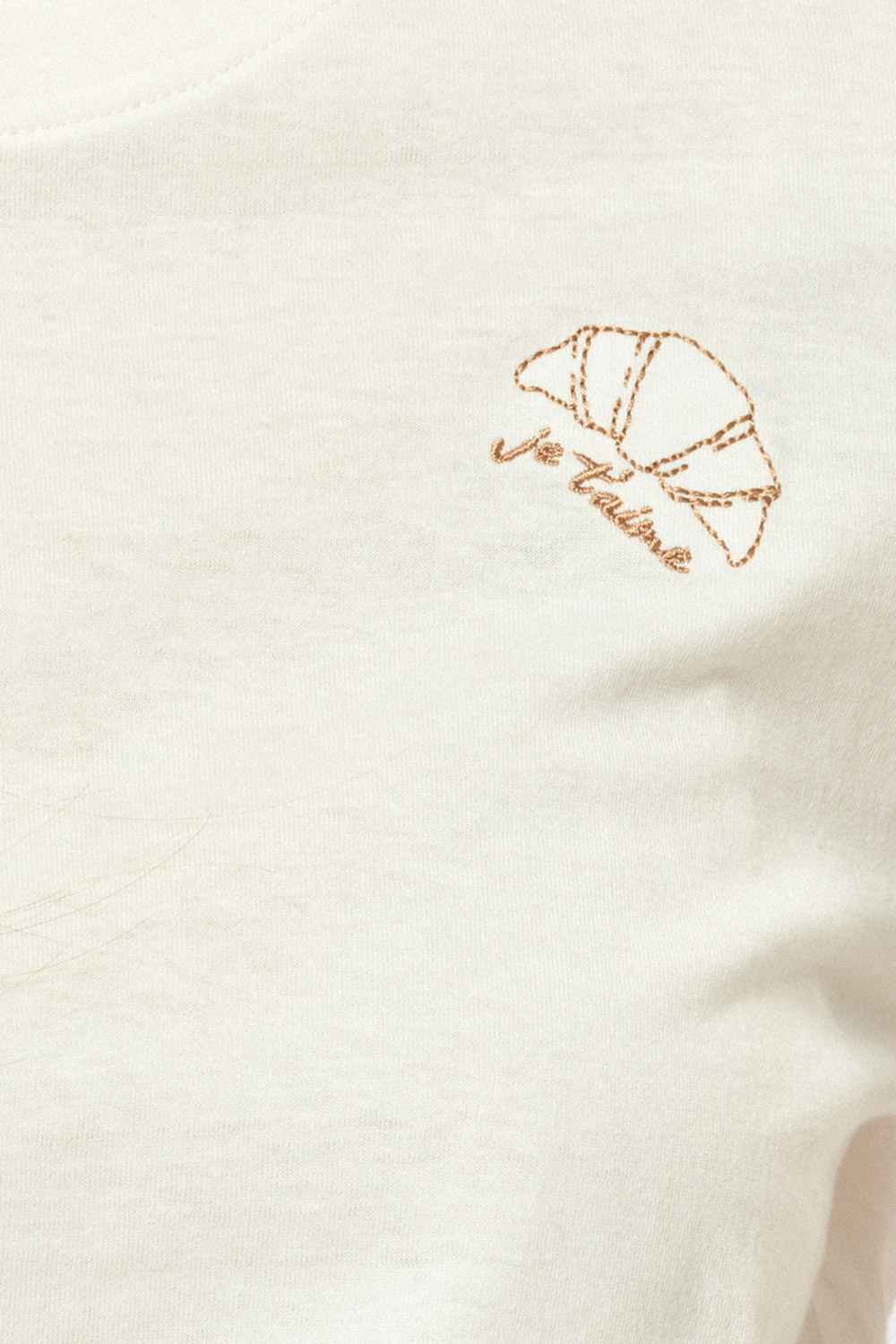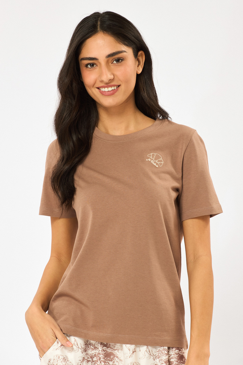 טי שירט עם צווארון עגול, גזרה ישרה רקמת קרואסון עדינה