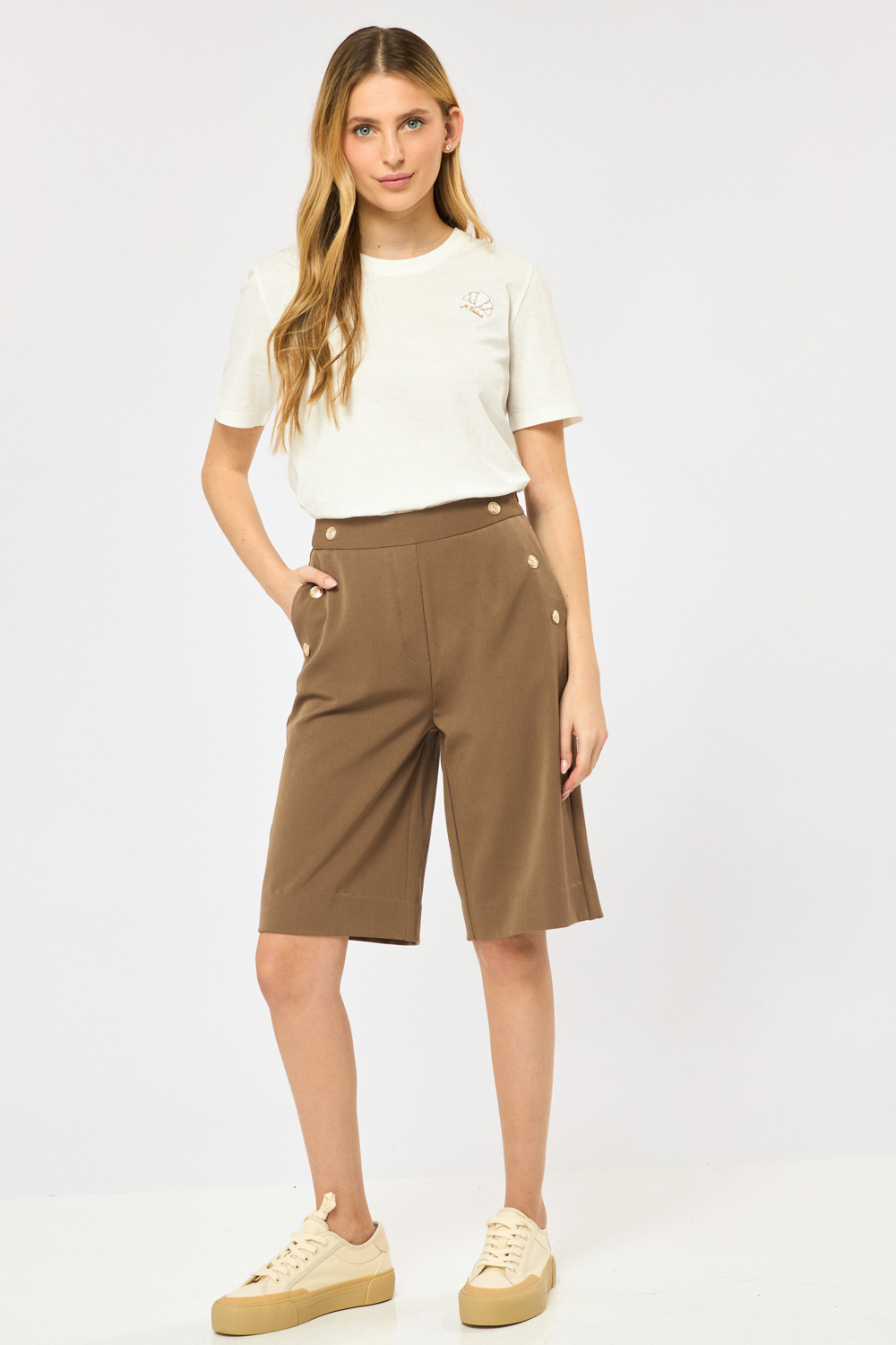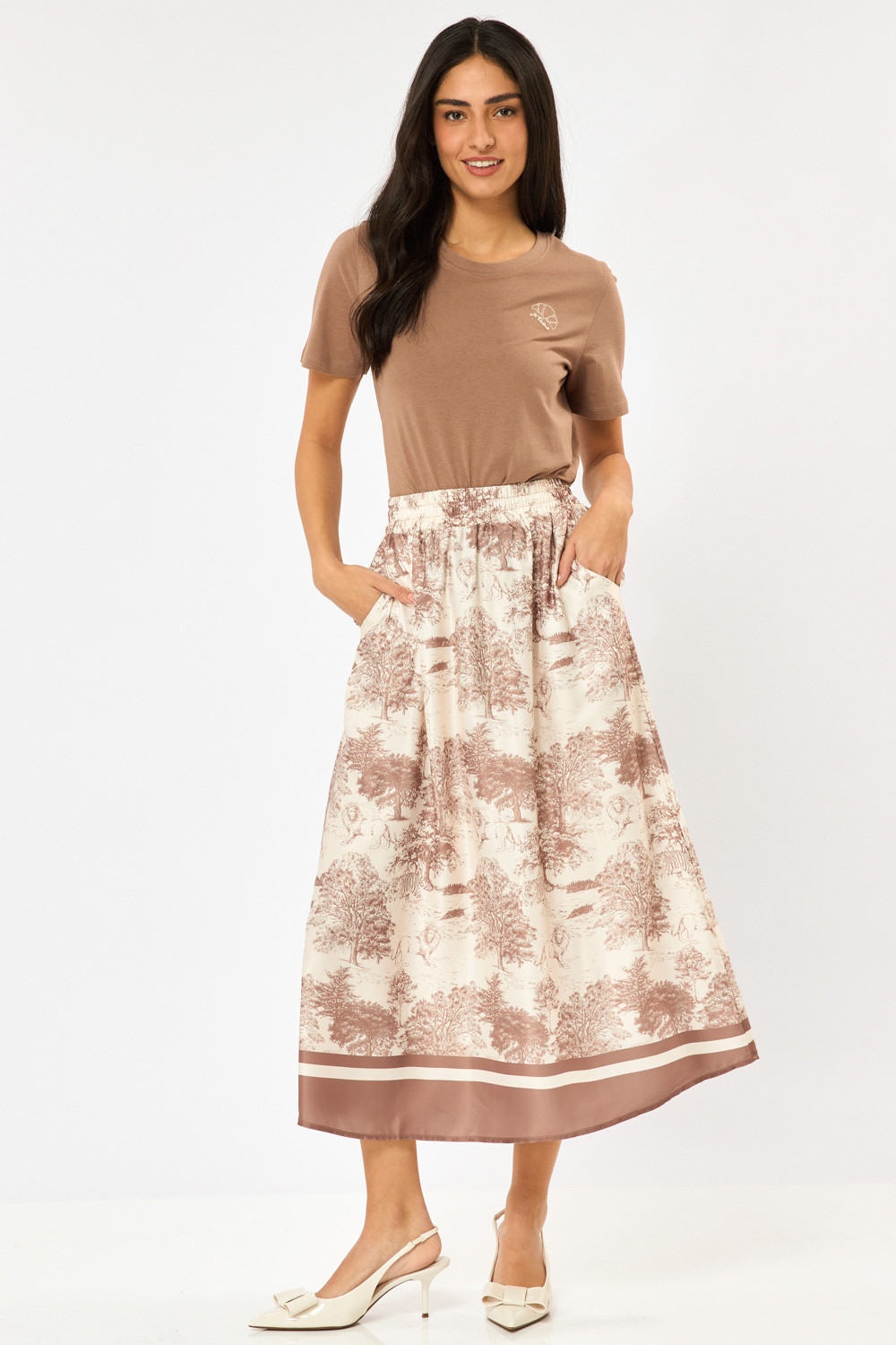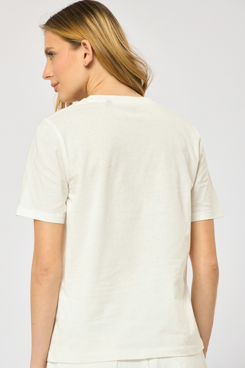 טי שירט עם צווארון עגול, גזרה ישרה רקמת קרואסון עדינה