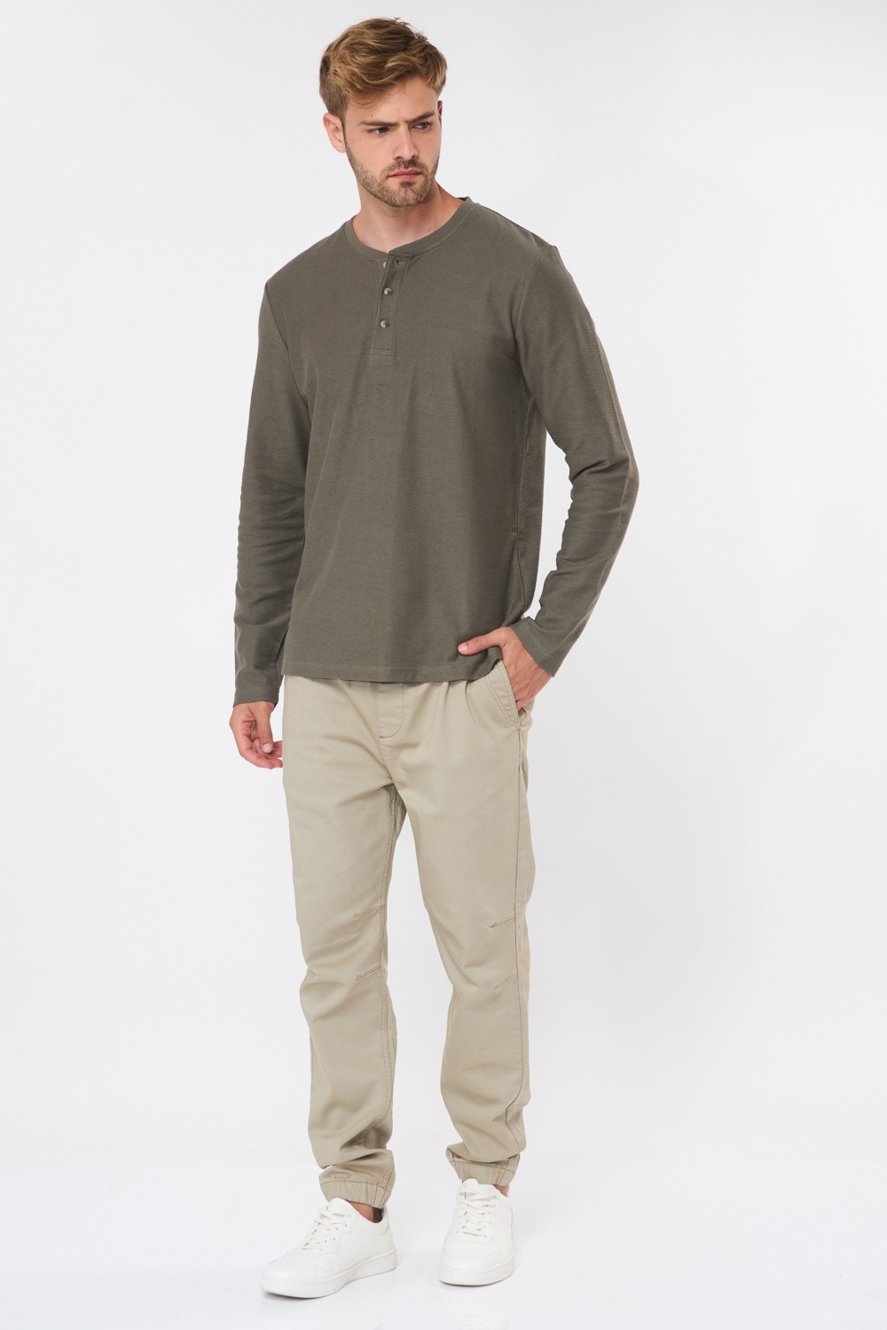 כיסים מעוצבים, ושילוב כיס רוכסן קדמי מימין.
