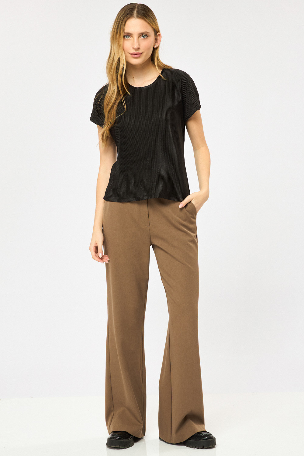 מכנס ארוך בגזרה מחויטת עם התרחבות קלה בסיומת