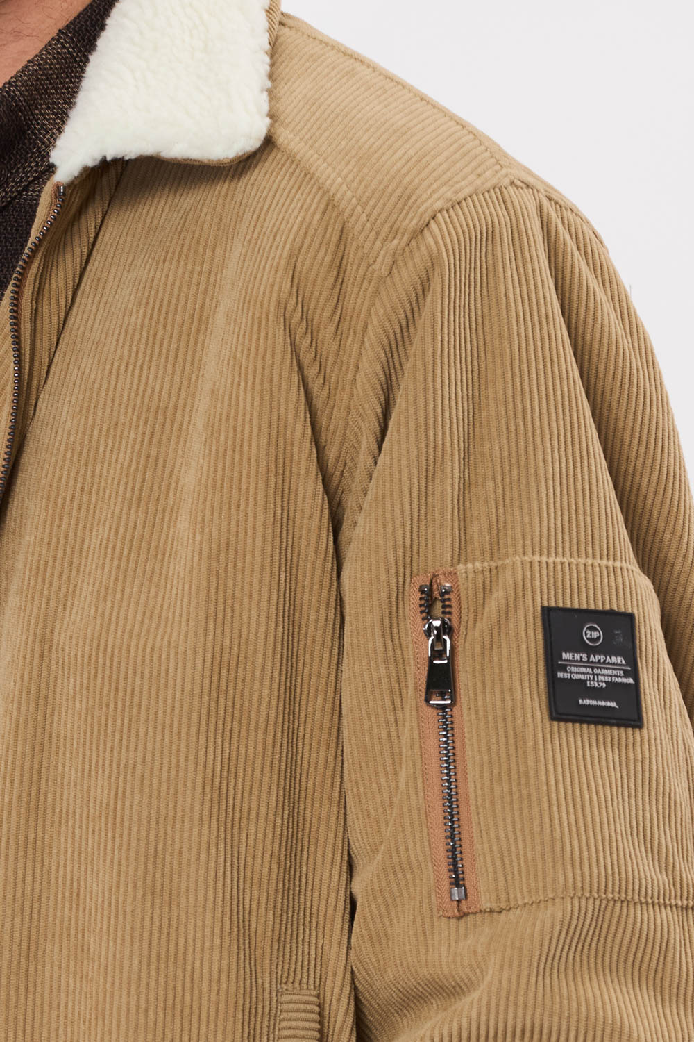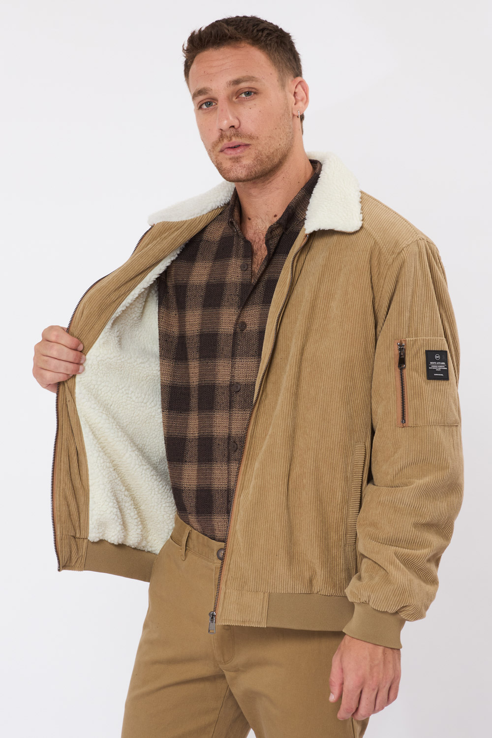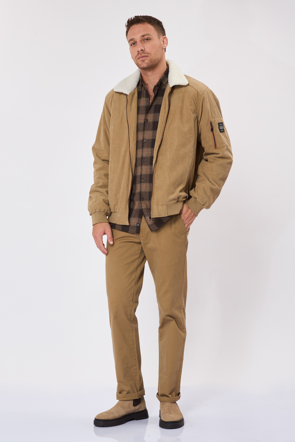 מעיל קורדרוי עם בטנת פרווה וצווארון פרווה כיסי צד וכיס דיטייל על השרוול