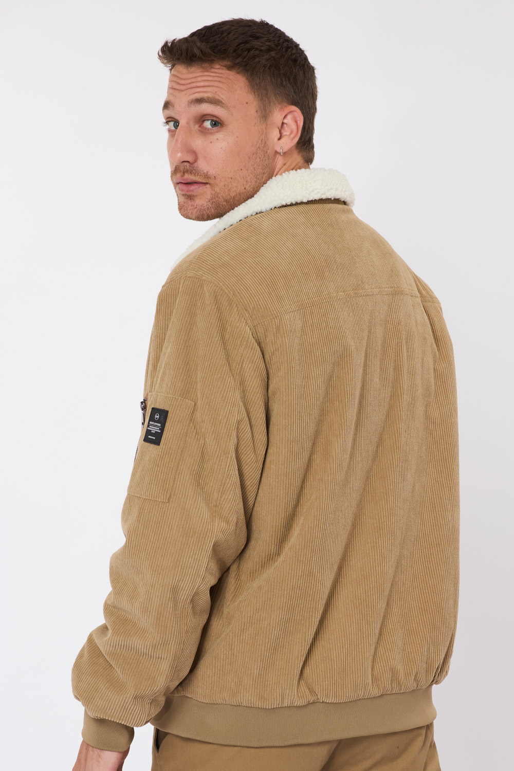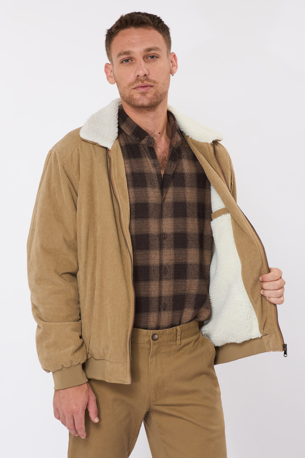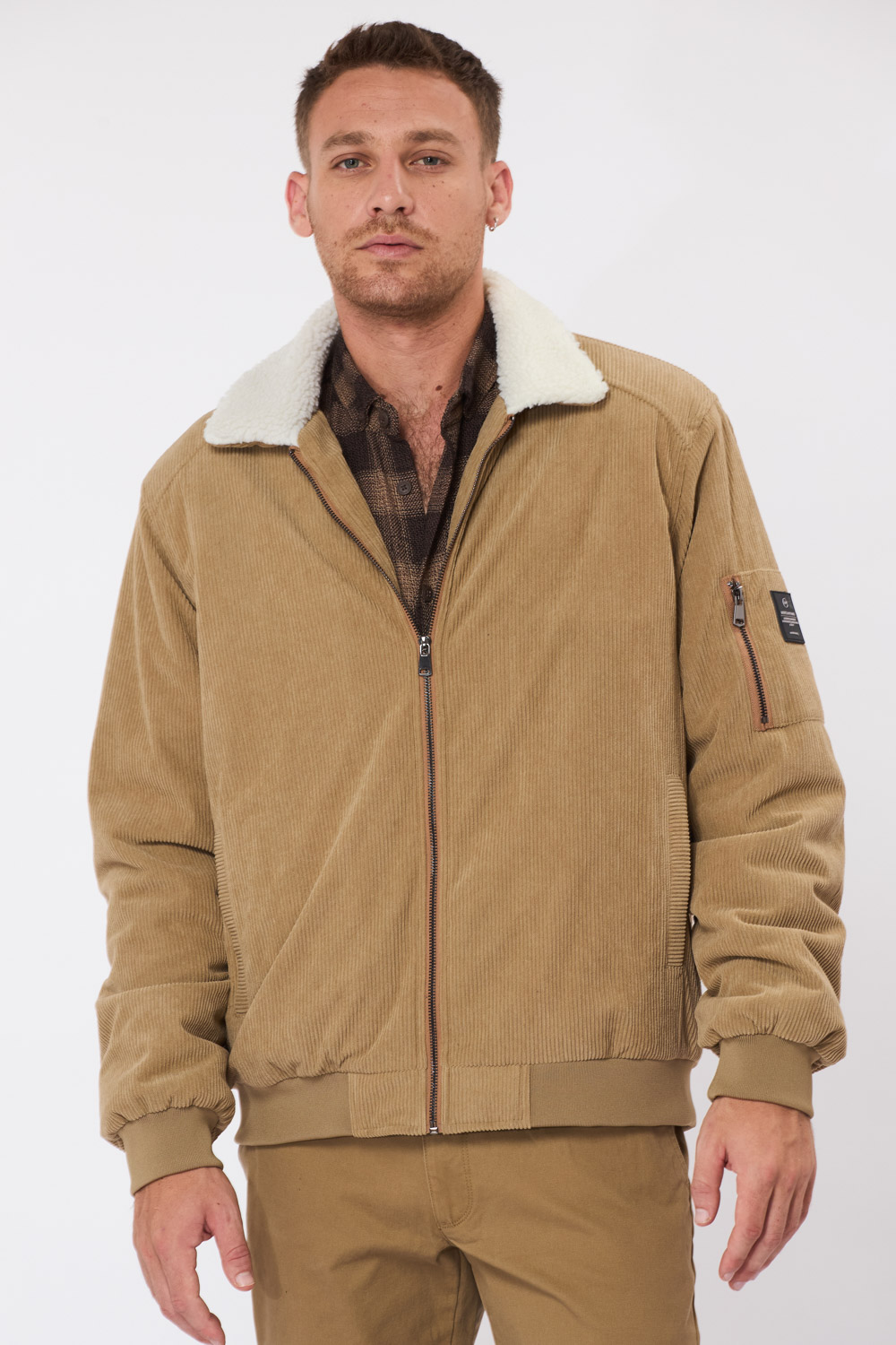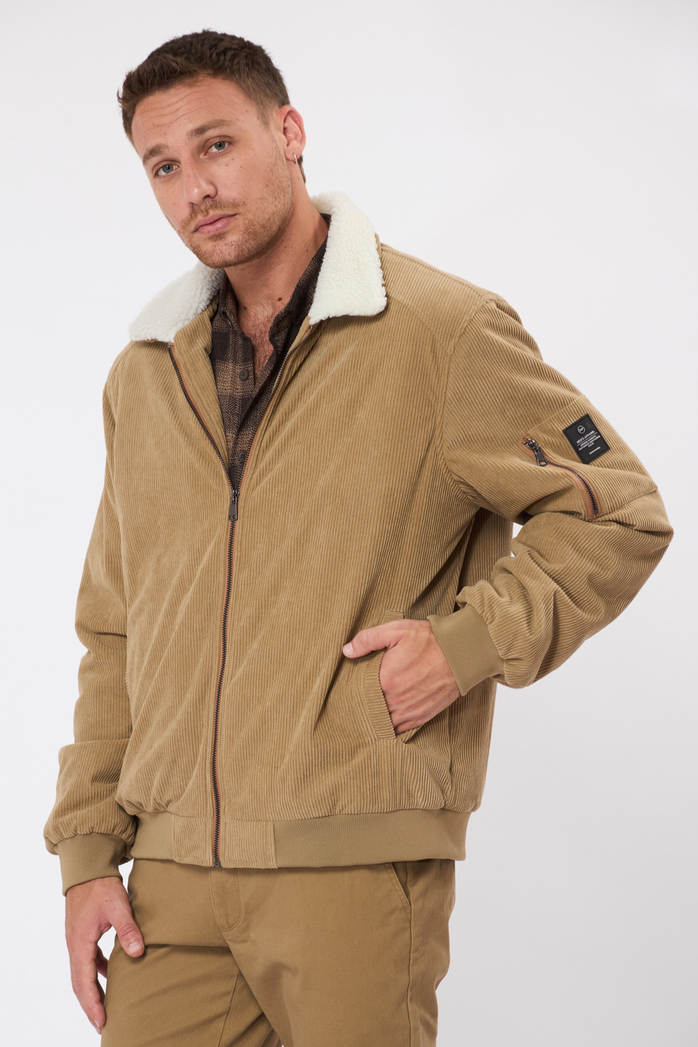 מעיל קורדרוי עם בטנת פרווה וצווארון פרווה כיסי צד וכיס דיטייל על השרוול