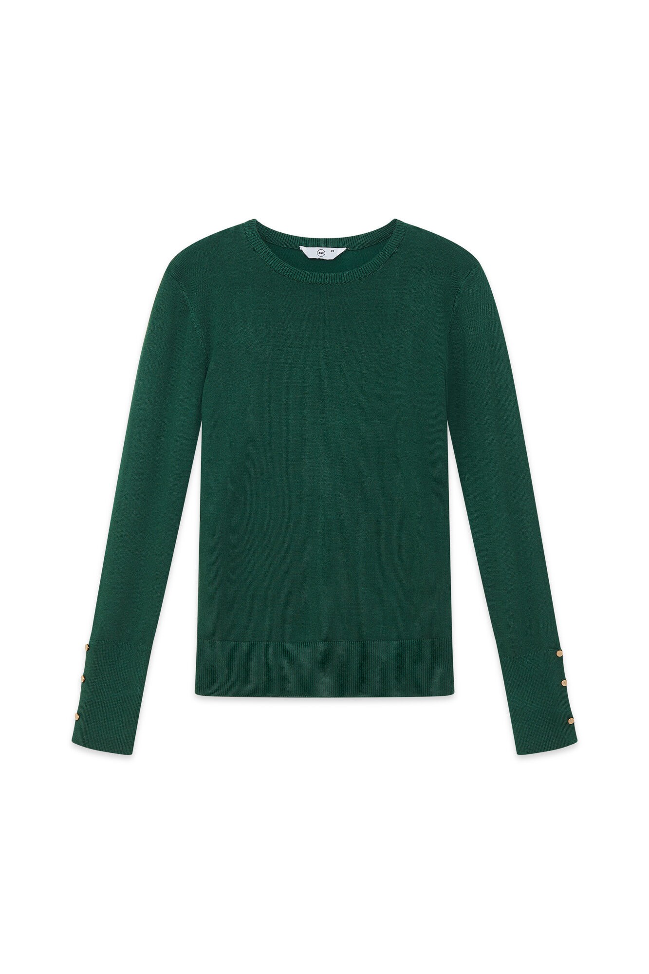 סריג בייסיק צווארון עגול סיומת ריב וכפתורי מתכת בסיומת השרוול