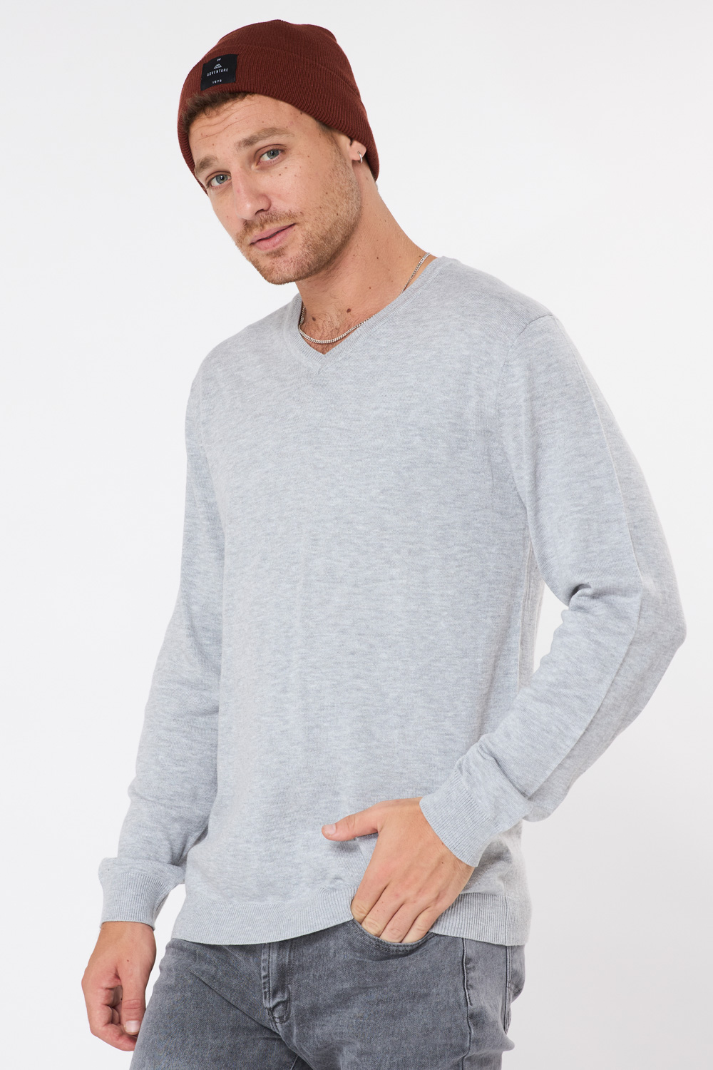 סריג בייסיק צווארון וי – אפור מלנש בהיר