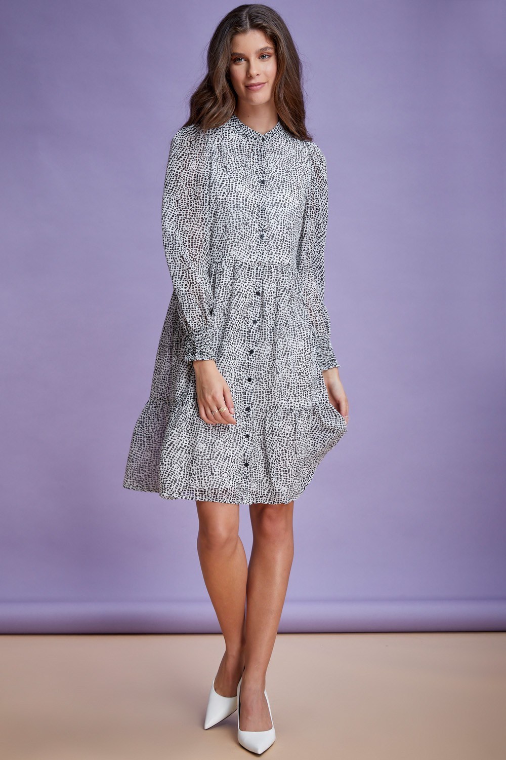 שמלת כפתורים טרצו שחור לבן