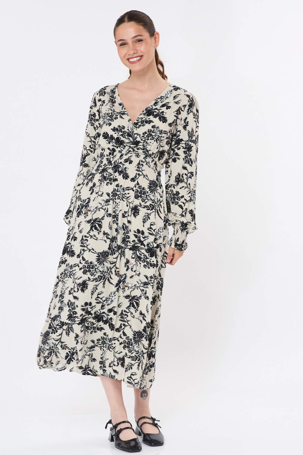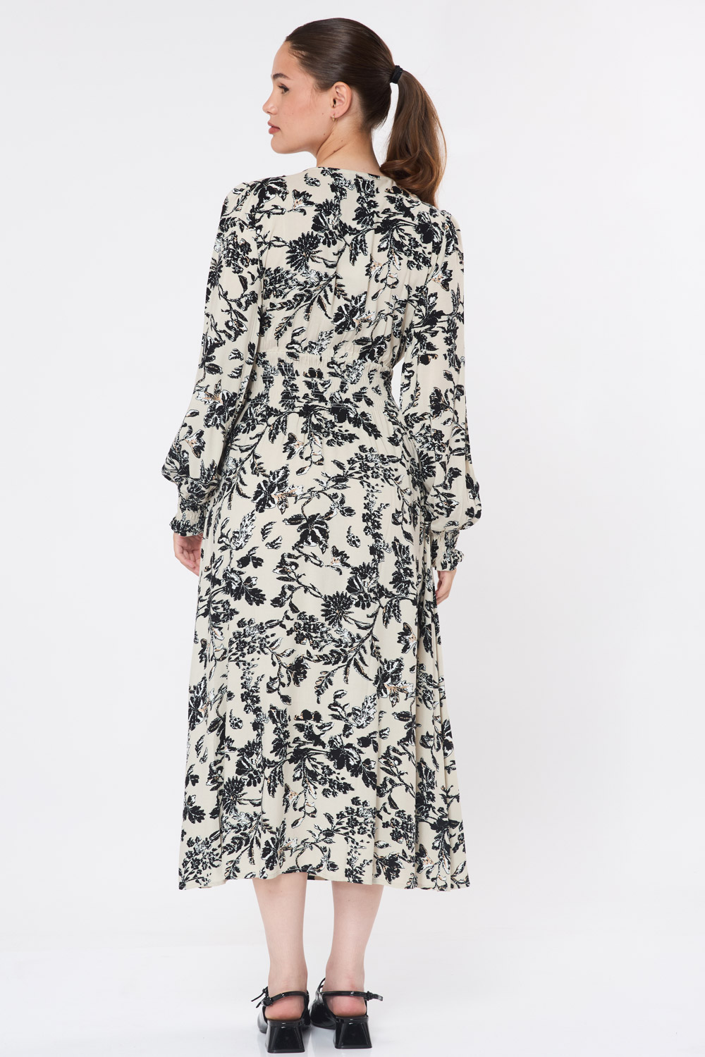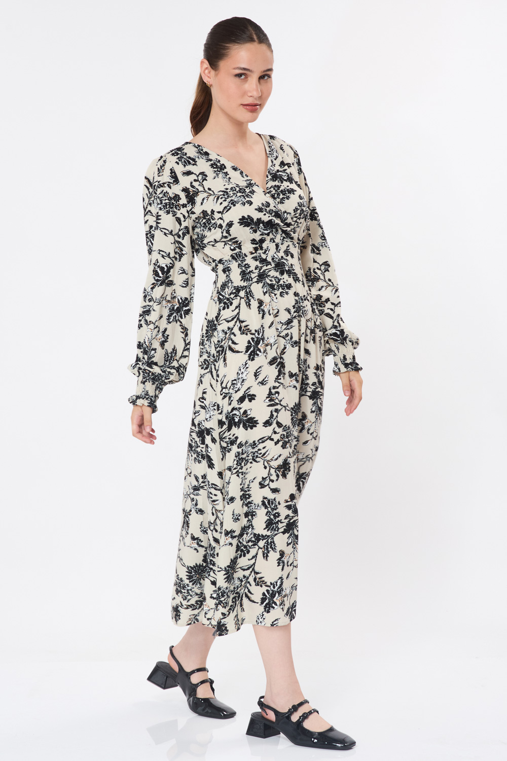 שמלת מידי מודפסת חלק עליון אלמנט מעטפת חגורת גומי אלסטית