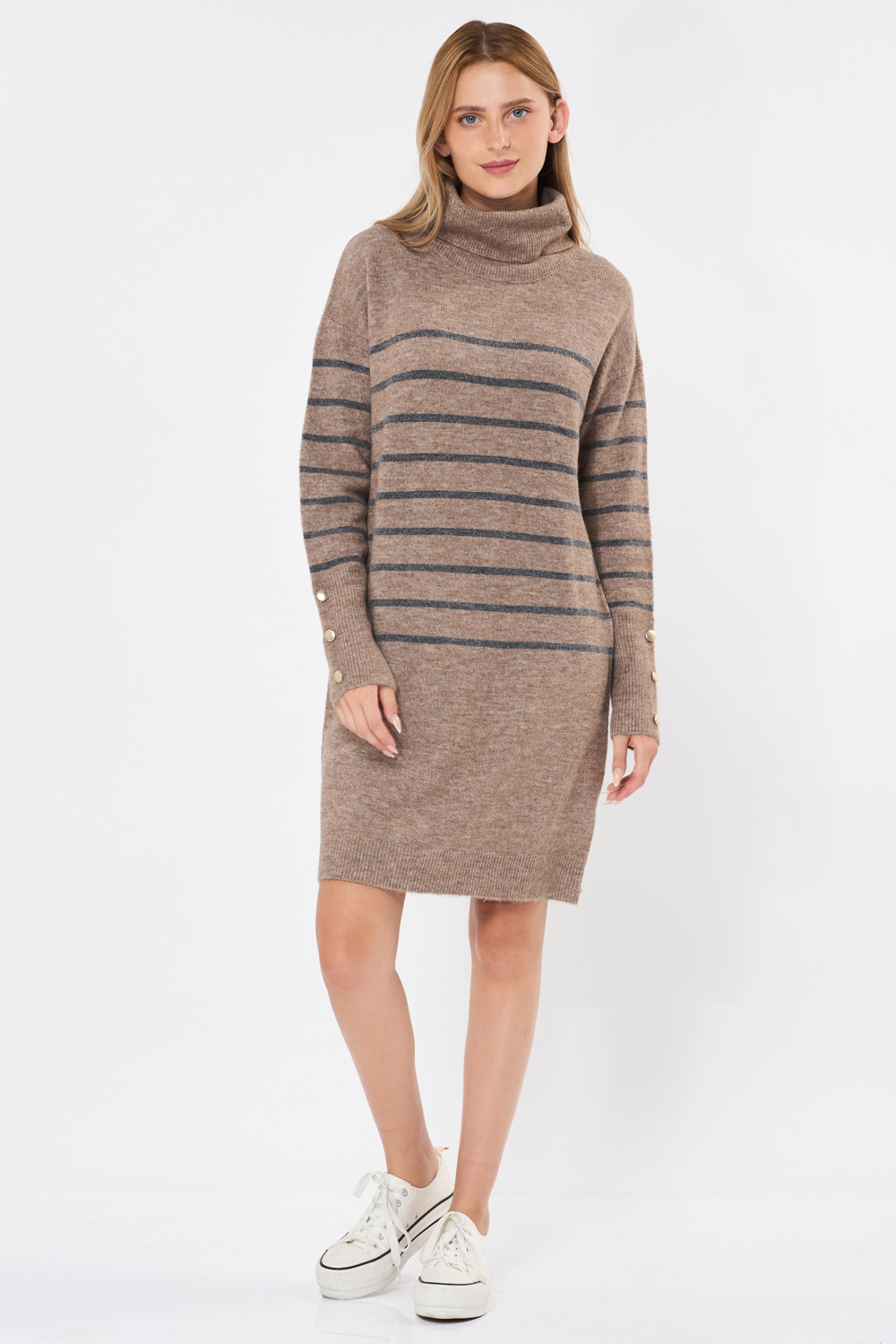 שמלת סריג דוגמת פסים צווארון גולף כפתורים מוזהבים בסיומת שרוול