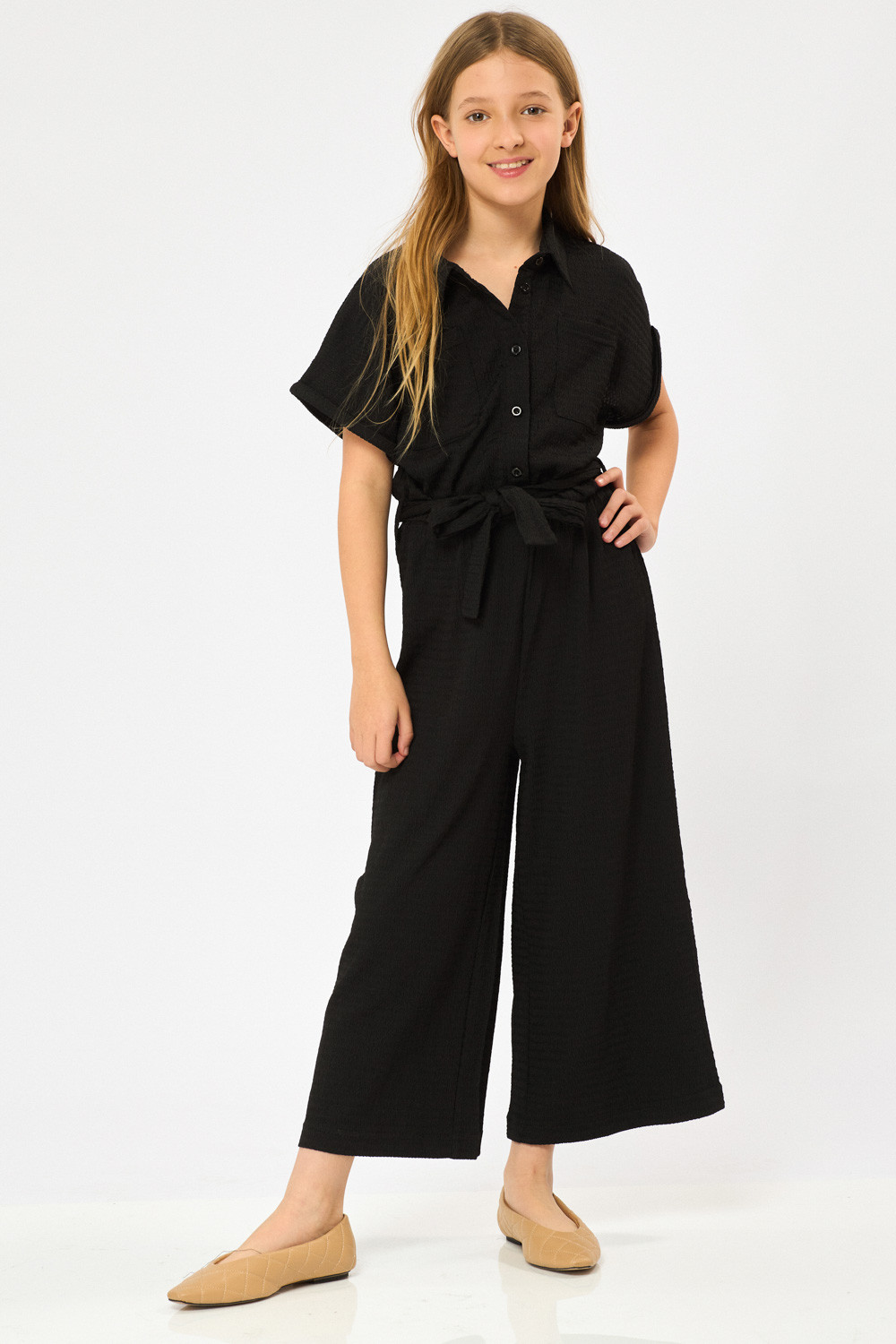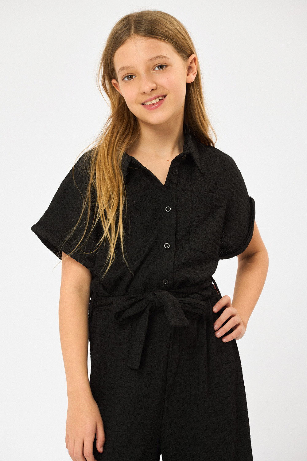 אוברול משגע בד סריג נעים, כפתורים וכיסים בחלק העליון חגורת בד לקשירה במותן